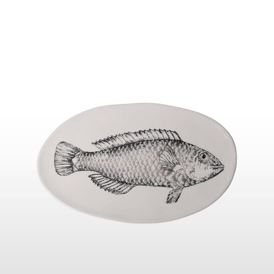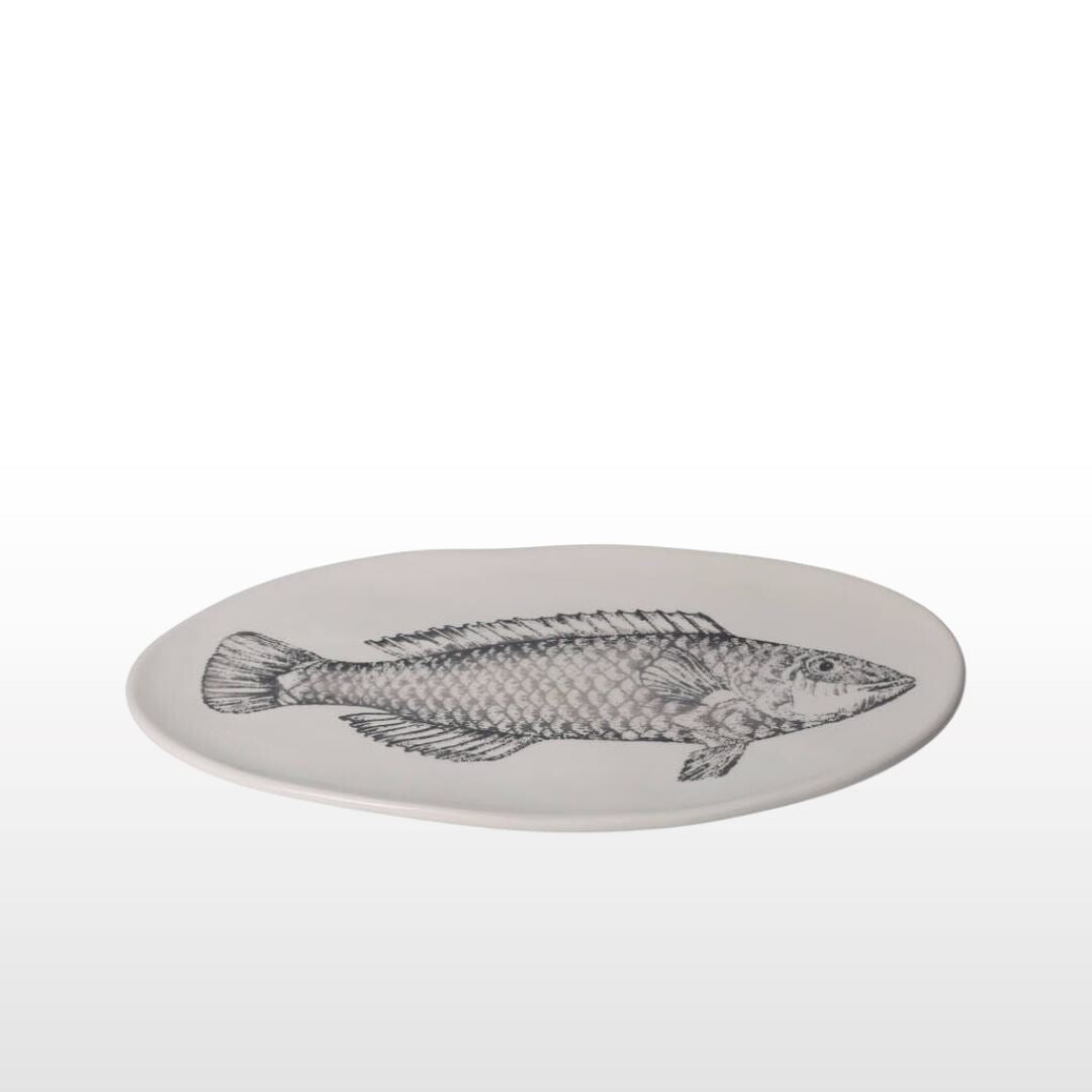 Make a statement at your next gathering with this exquisite Serving Plate Silver Fish. Crafted with an irregular oval shape, it offers ample space to serve an array of seafood dishes and summer salads. The beautifully finished printed design adds a touch of elegance to any al fresco dining experience, making it a perfect gift for dinner party hosts and seafood lovers alike. Recommended handwash only.