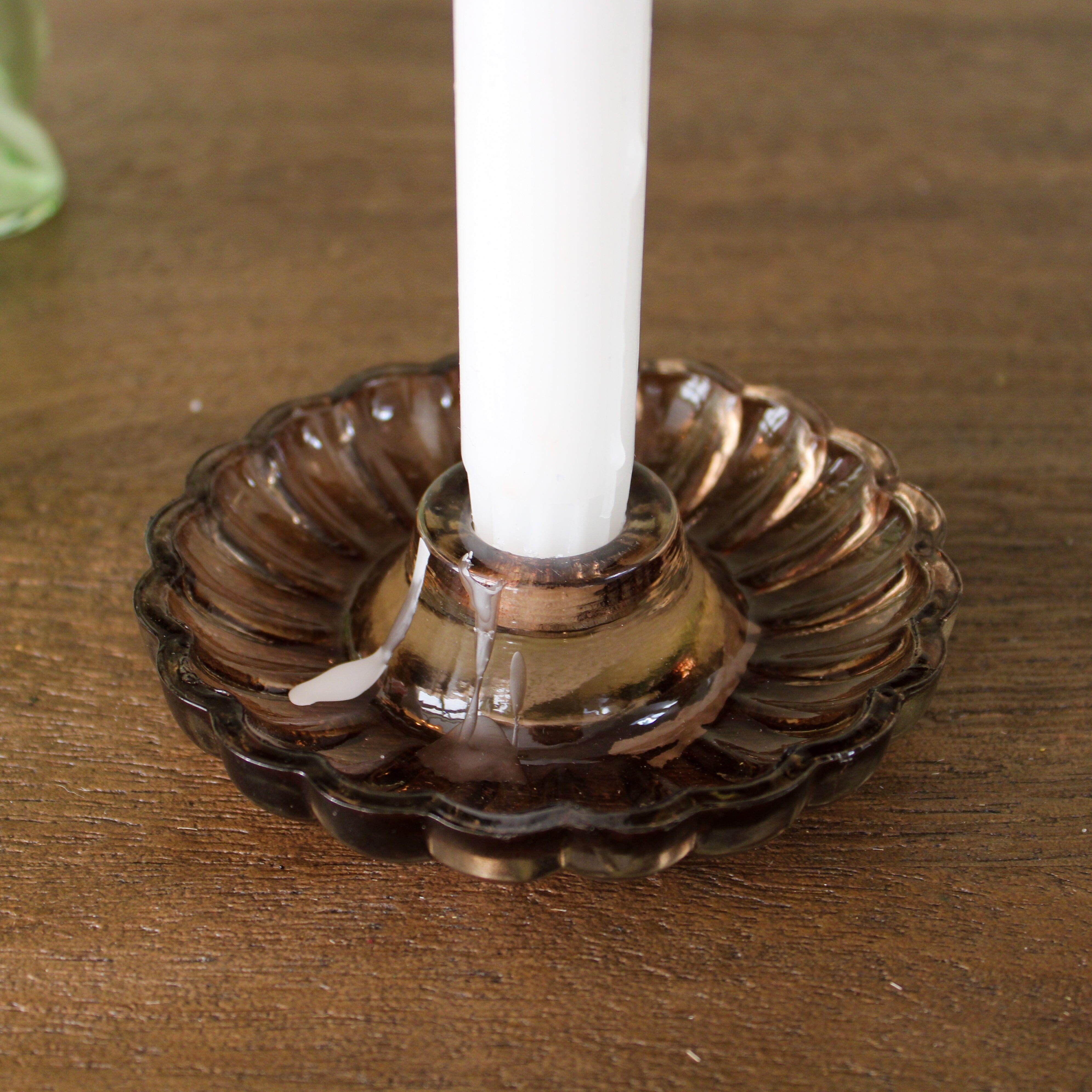 This Mocha Glass Candle Holder is made of scalloped glass in a warm comforting hue. Perfect for creating a relaxed table setting, this candle holder is ideal for low profile tablescapes or for a cozy midweek supper. Add simple sophistication to your dinner table with this lovely piece.