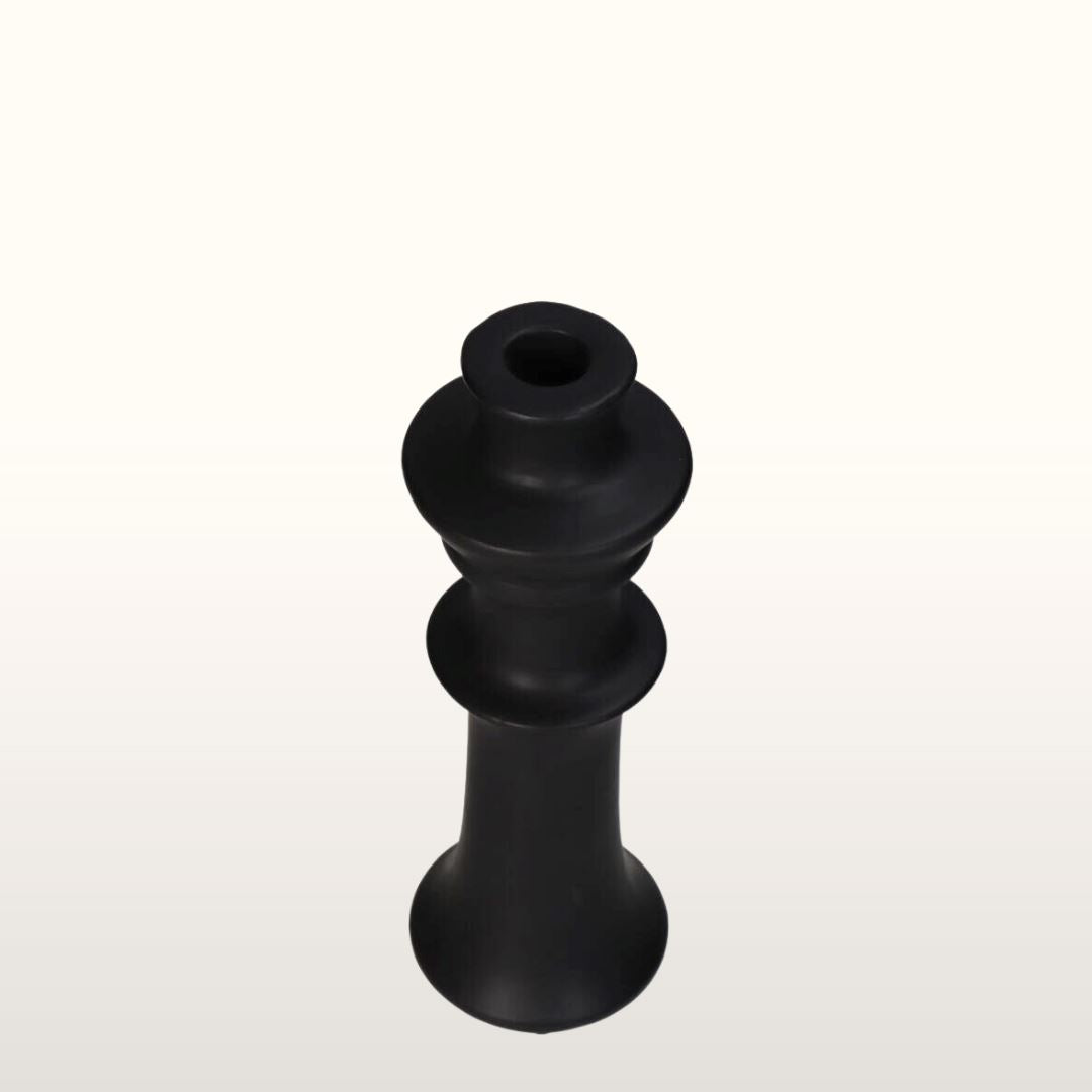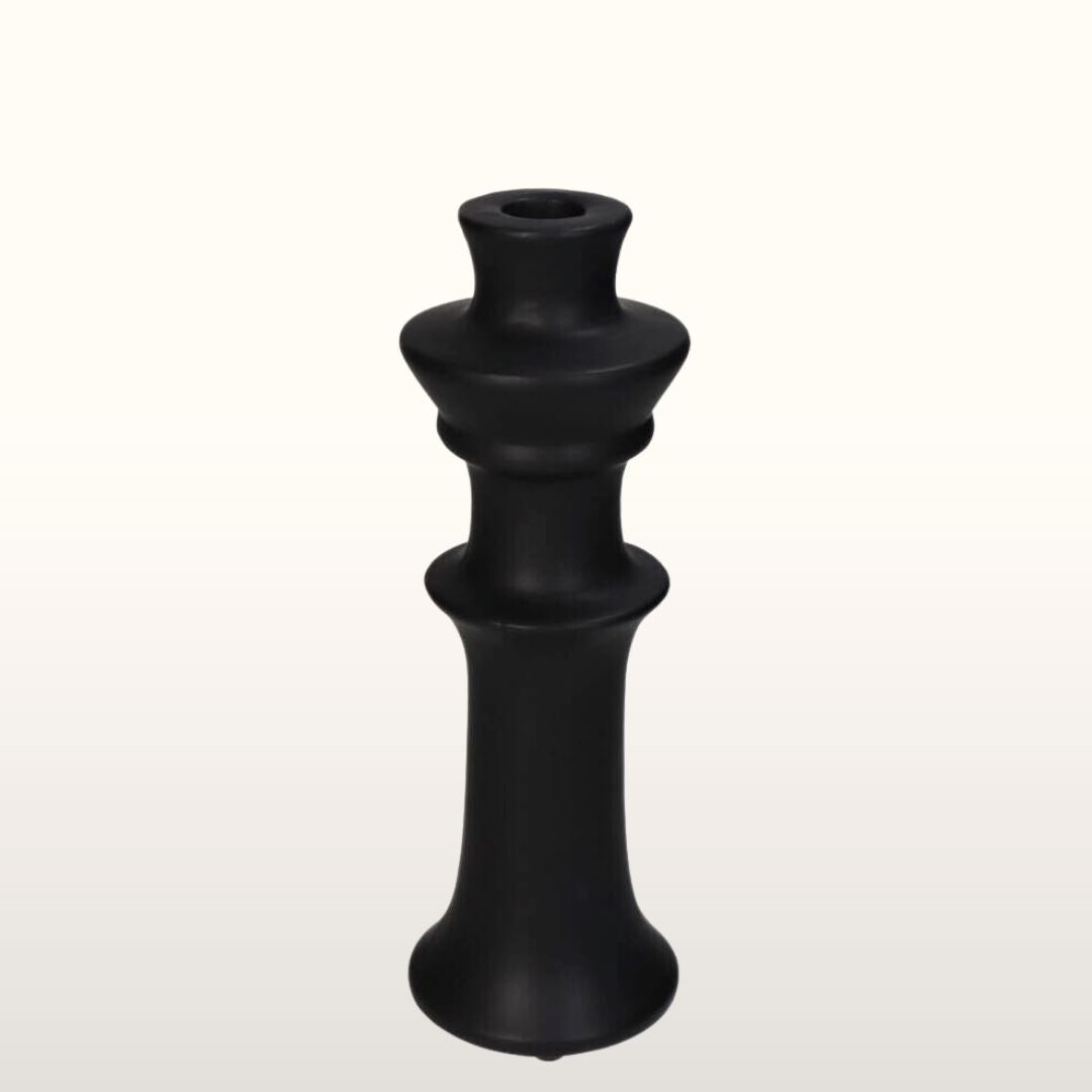 This matt black lovely candlestick with plenty of sculptural curves. It goes perfectly with dark and moody tones in your space or with a monochromatic look, pair this with our short black candlestick for a lovely display together. Add True Grace Dinner Candles to use the candlestick to it's fullest. At 24cm tall, this is just gorgeous sitting on a sideboard or table.