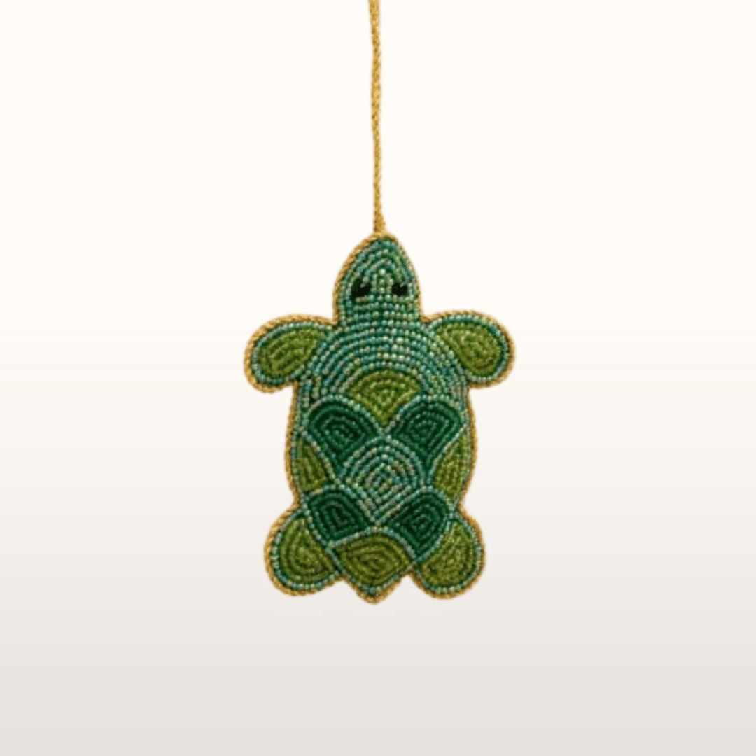 This beautiful embroidered Christmas decoration is part of our 2023 hand made Christmas tree decoration collection. This charming turtle is perfect for the amphibian lover in your life - a beaded delight!