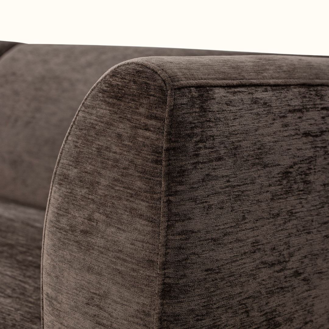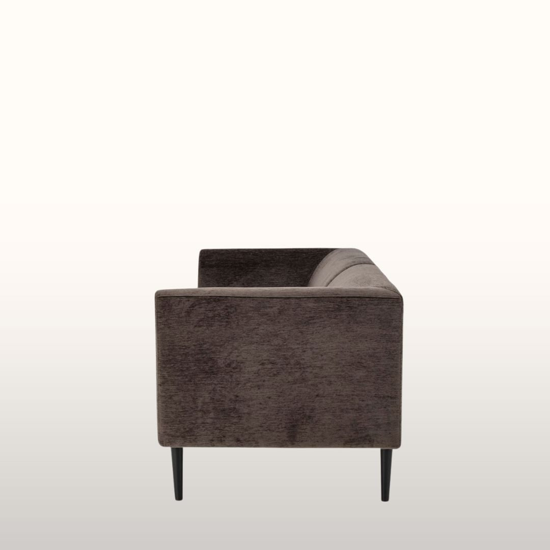 We are completely enamored by the chic and elegant stature of this Large Brown Modern Sofa. Covered in a flat velvet weave in a deep, warm brown, this piece would look fabulous in  any open plan space or modern living area with a warm tonal scheme. Fixed seating and a low back provide both support and a sleek build, while the curved and tapered arms are perfect for resting. Durable and easy to clean, this sofa is a must-have for those seeking sophistication and functionality. This sofa is available in a large three seater size of 238cm, making it ideal for larger rooms and busy homes. This sofa will be ready to ship in 6-8 weeks.
