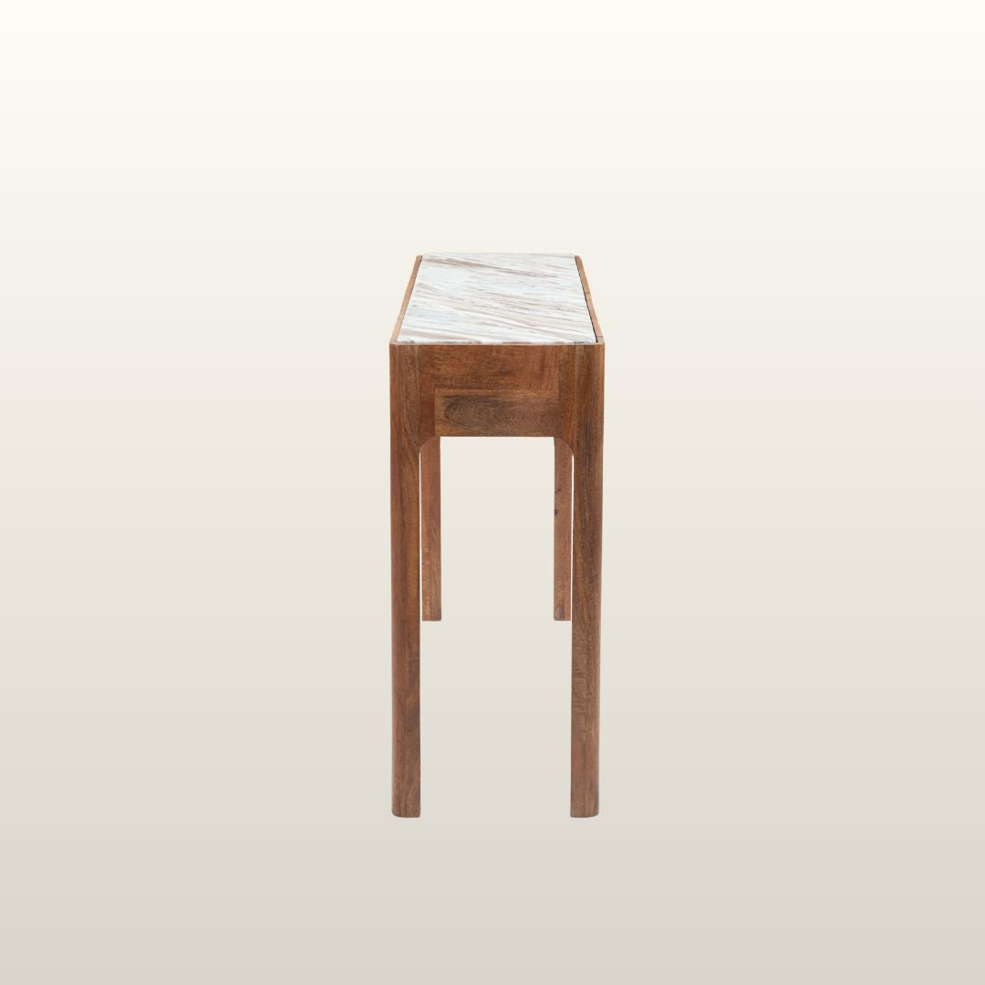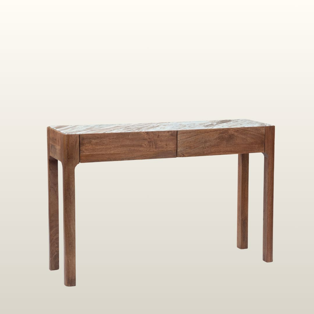 This stunning console table with beautiful toronto marble is a dream piece for the stylish contemporary hallway! Adorn your hall with grace and beauty and also offer that all important hallway storage. Immaculately made of solid mango wood, it has beautiful curved edges and a contemporary frame which comes together as an elegant pared back design yet with the twist of a stunning marble. This is a console table that could be made minimalist or maximalist to suit your interiors.
