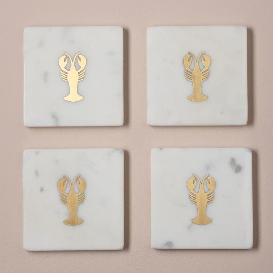 This super pretty set of marble coasters with gold inlay lobsters are a fun piece of whimsy for your coffee table or bar. The elevated white marble is the perfect backdrop to the gorgeous gold inlay and a lobster always has a certain panache. Ideal as a party gift for a friend or keep them all for yourself to enjoy.