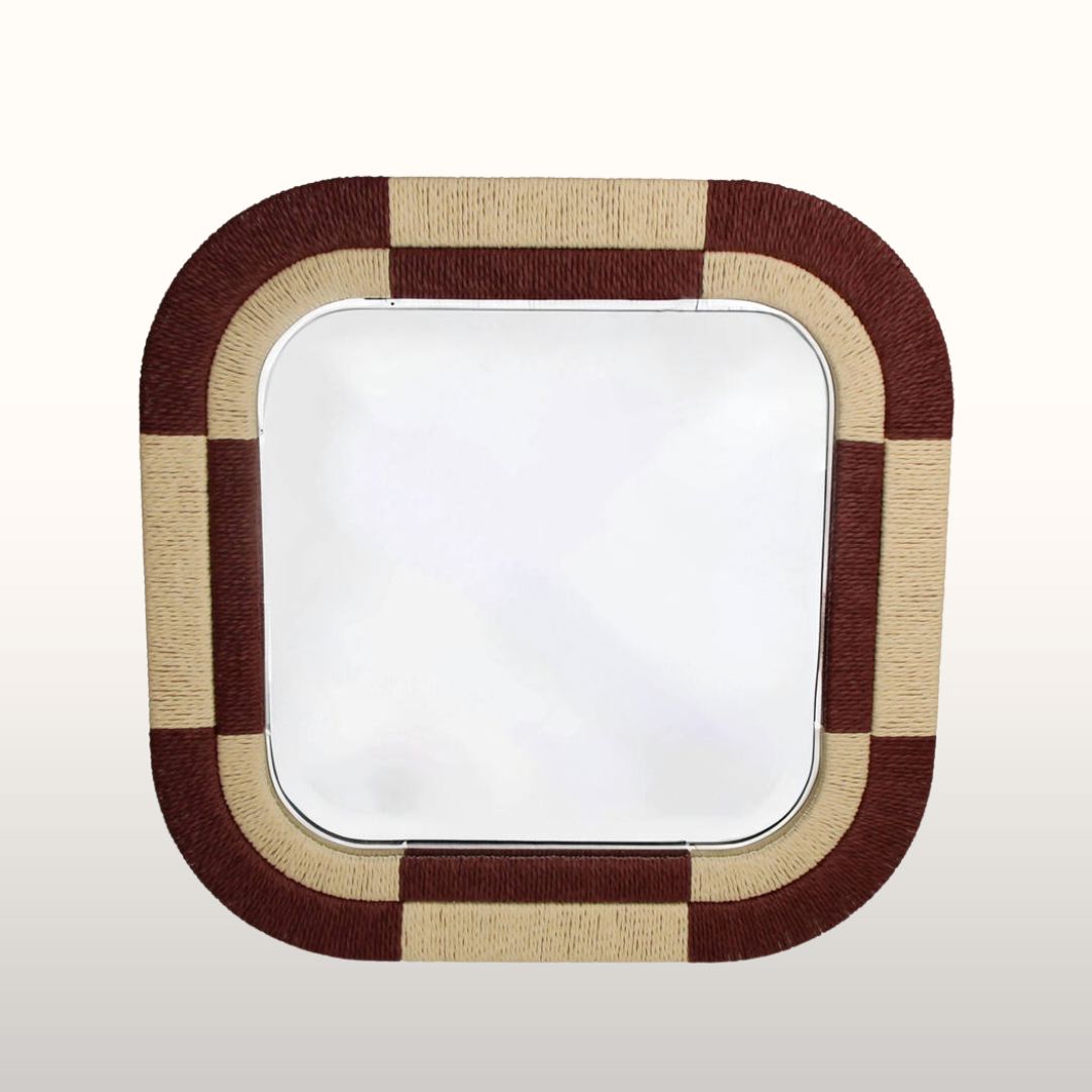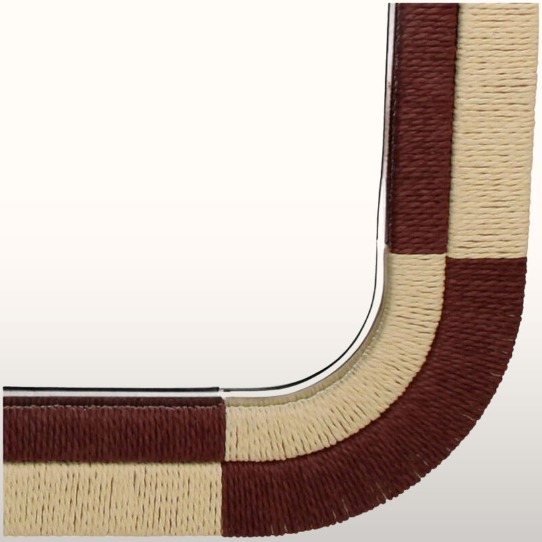 Add a pop of texture and colour to your home with our gorgeous Woven Frame Mirror in rich burgundy. We love how it brings a touch of sophistication to any space, with its Art Deco and Mid-Century inspired design. The geometric pattern in natural tones adds just the right amount of elegance without being too fussy. It’s perfect for brightening up an entryway or adding a stylish touch to a bedroom—plus, it helps bounce light around the room, which is always a bonus! It’s just the right size to make a statement without taking over the space. A beautiful mix of form and function!