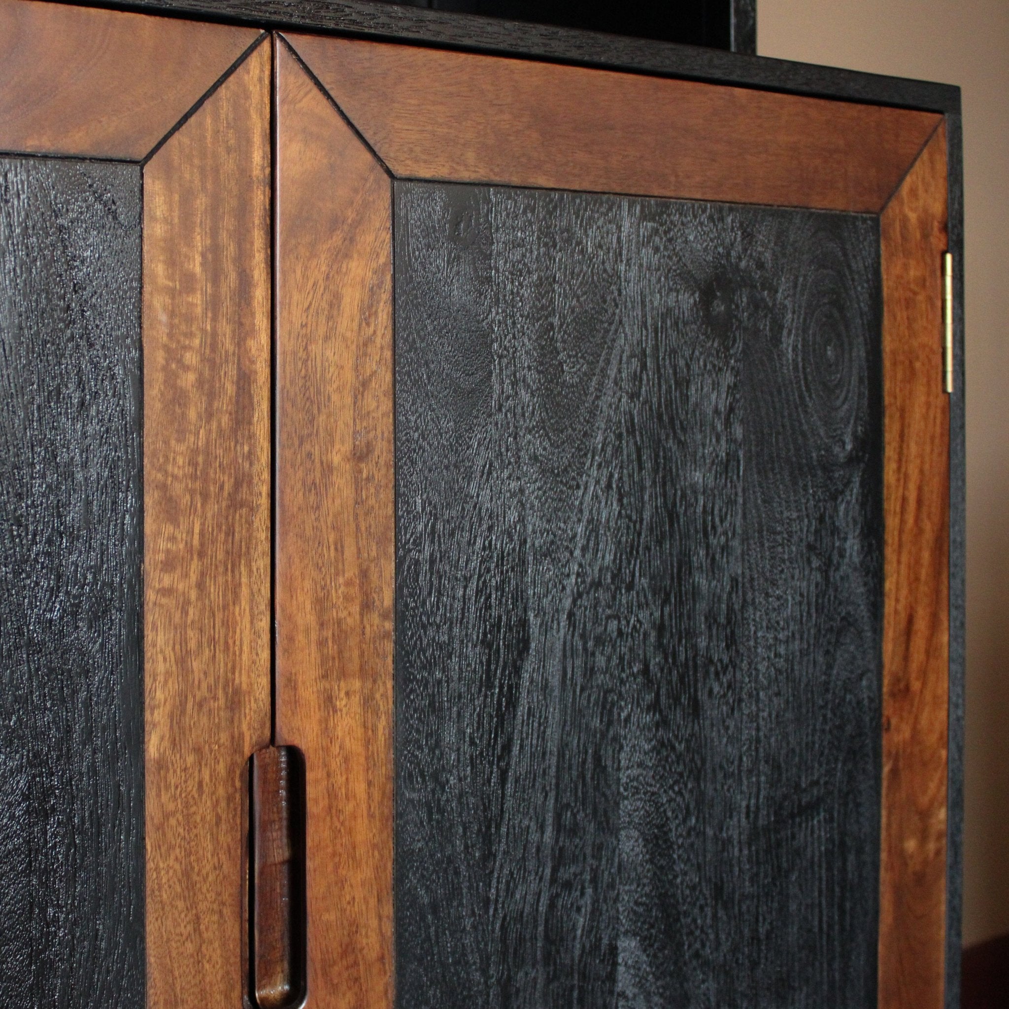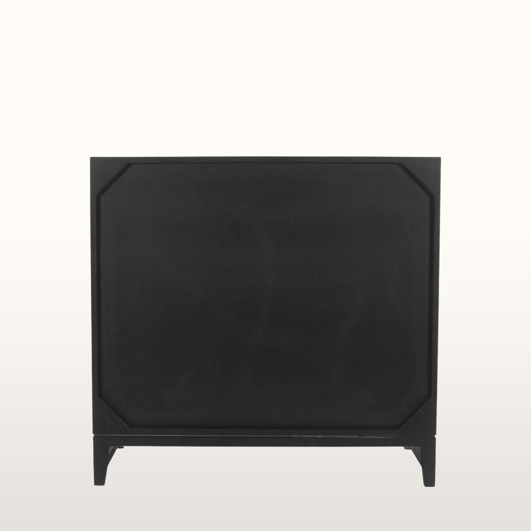Our inlay design is a stunning black with inlaid wood borders that have been immaculately champhered to create a sophisticated and immensely stylish finish. This cabinet is further elevated with stunning hidden handles, piano hinges and a small shadow gap between the cabinet and the base. A beautiful piece of contemporary design.