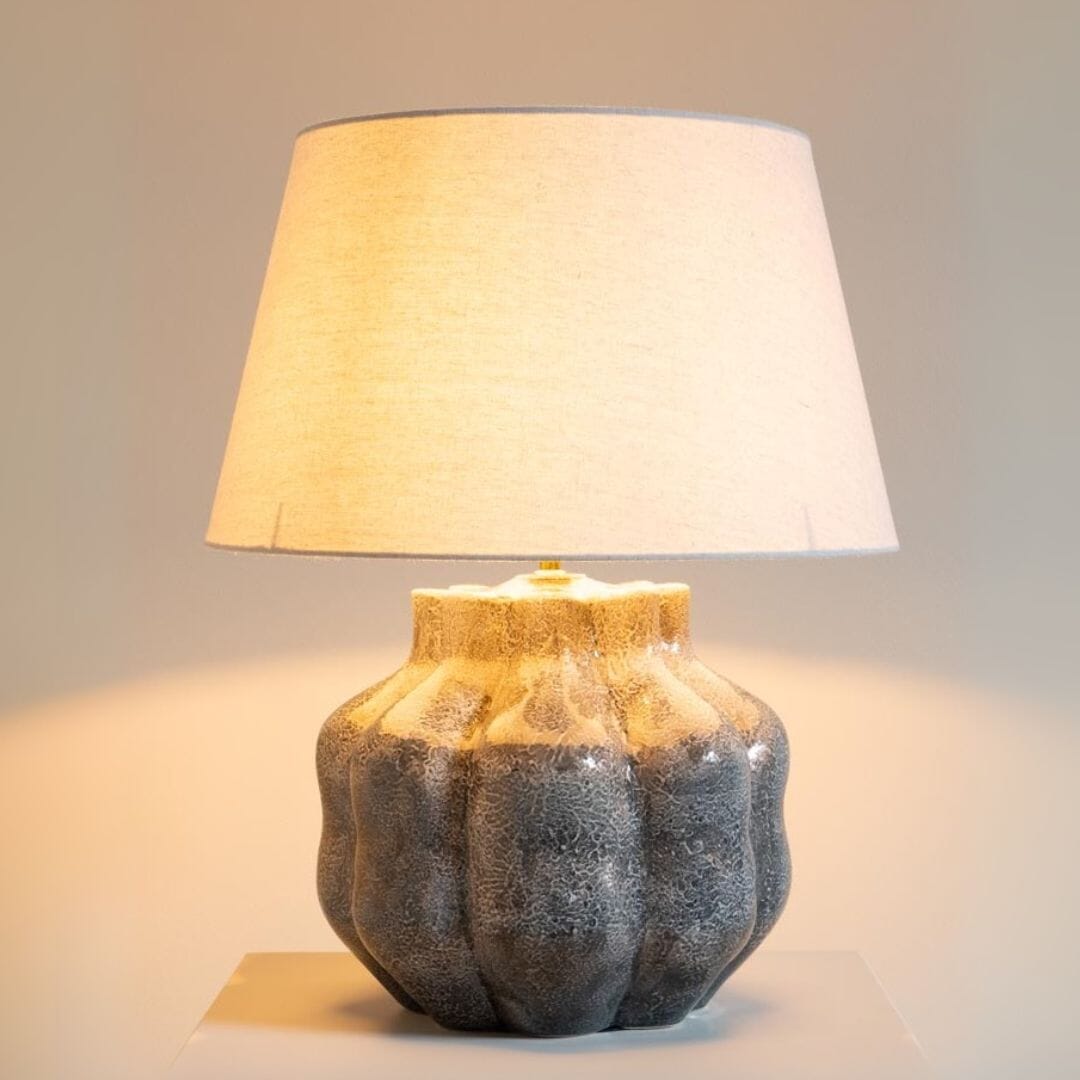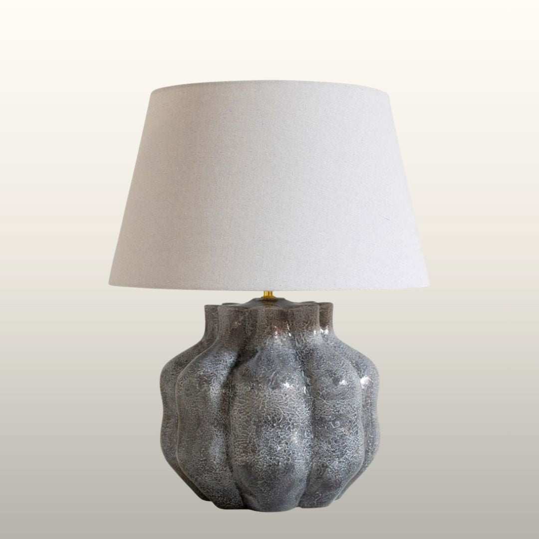 Add a statement piece to your home decor with our Large Grey Ceramic Table Lamp. This table lamp has a wonderfully tactile and organically shaped ceramic base finished in a mottled grey glaze which is sure to appeal to your senses. The large size and generous shade will add lots of light to your room which make it perfect for adding to a long sideboard or large side table.