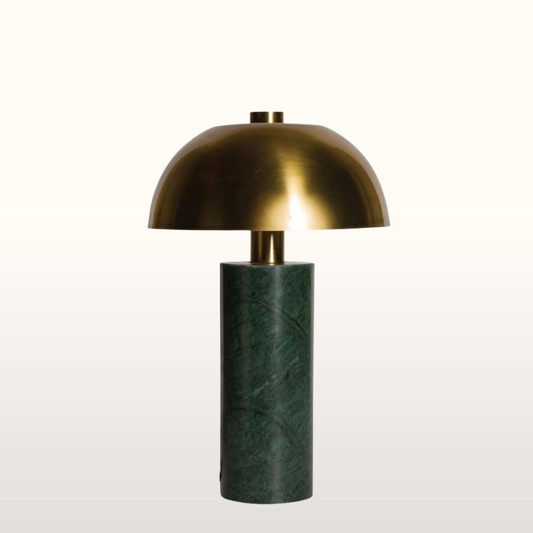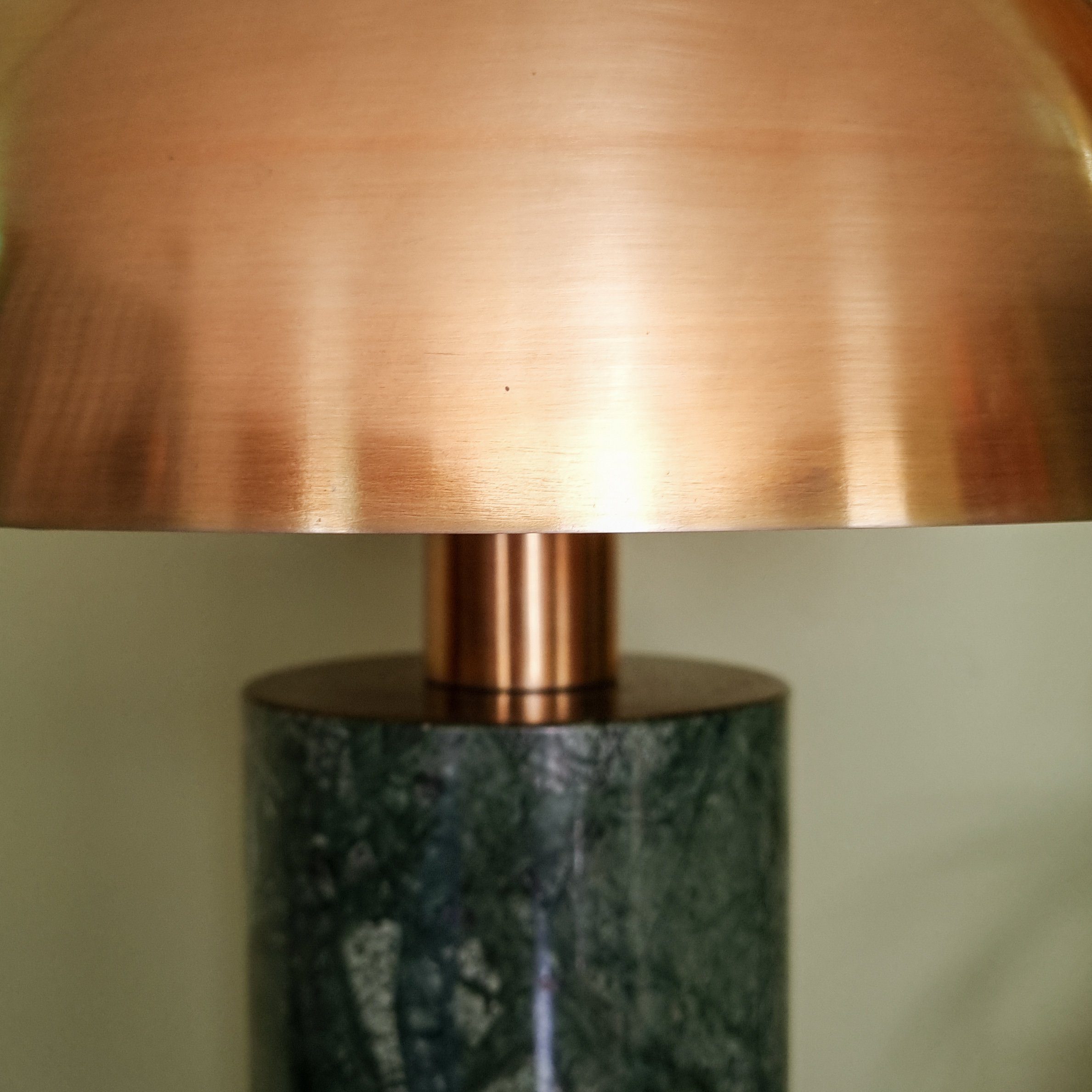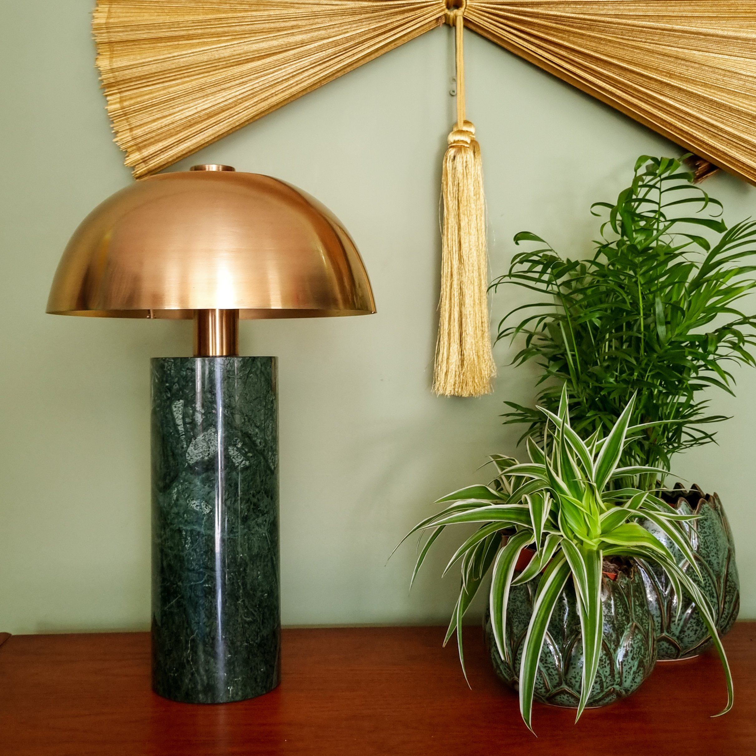 Now this is a quite a table lamp. It has a gorgeous tall and very heavy cylindrical marble base which is topped with a matt brass dome. Lovely and tall, this really super lamp will cast light downwards and work really well as a pair on a sideboard, next to a bed or at each end of a sofa. The dark green marble is a great way of adding a touch of natural luxe to your home and these reassuringly heavy lamps have a timeless quality to them.