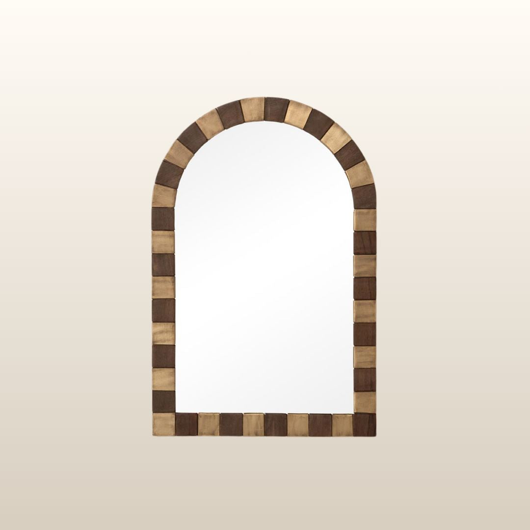 Brass Wood Arched Mirror