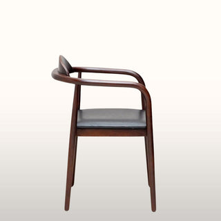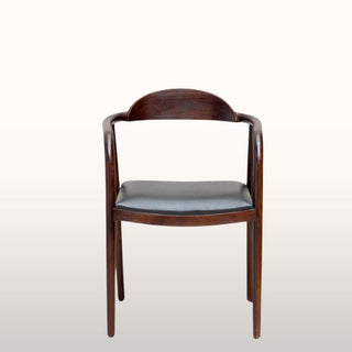 Indulge in luxury with our Dark Wood Polished Carver Dining Chair. With its sloping bentwood arms and half moon back, this chair is a fabulously elegant and sophisticated dining chair. The tapered legs and black leather seat add to its elegance. Finished with polished dark wood, it offers a chic take on mid-century inspired design and we could see many dinner parties carrying on long into the night on these beauties!