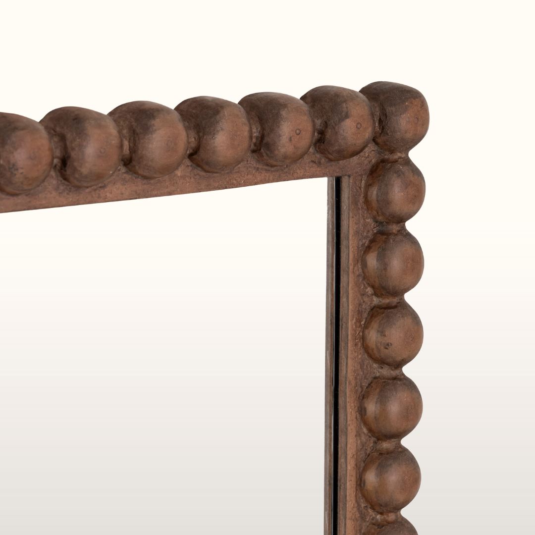 This is a stunning rectangular bobbin mirror in a warm toned wood that is going to absolutely shine in your home.  This wall mirror has such a stunning silhouette, the bobbin frame making it at once cosy and also extremely striking.  This mirror could be used in a hallway over a console table or could equally make a fabulous mirror for a dressing table.  The wooden frame makes this mirror very versatile and will fit into many places in your home.
