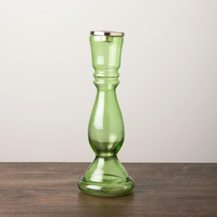 This fabulous candle holder is a colourful delight! It's long stature make for a bold statement on sideboards, dinner tables or coffee tables. The beautiful bright green coloured glass and classically molded finish are a delightfully unexpected combination. Mix with the other pieces from this collection for a technicoloured display that really packs a punch! Pair with some of our colourful True Grace Dinner Candles for an extra burst of colour.