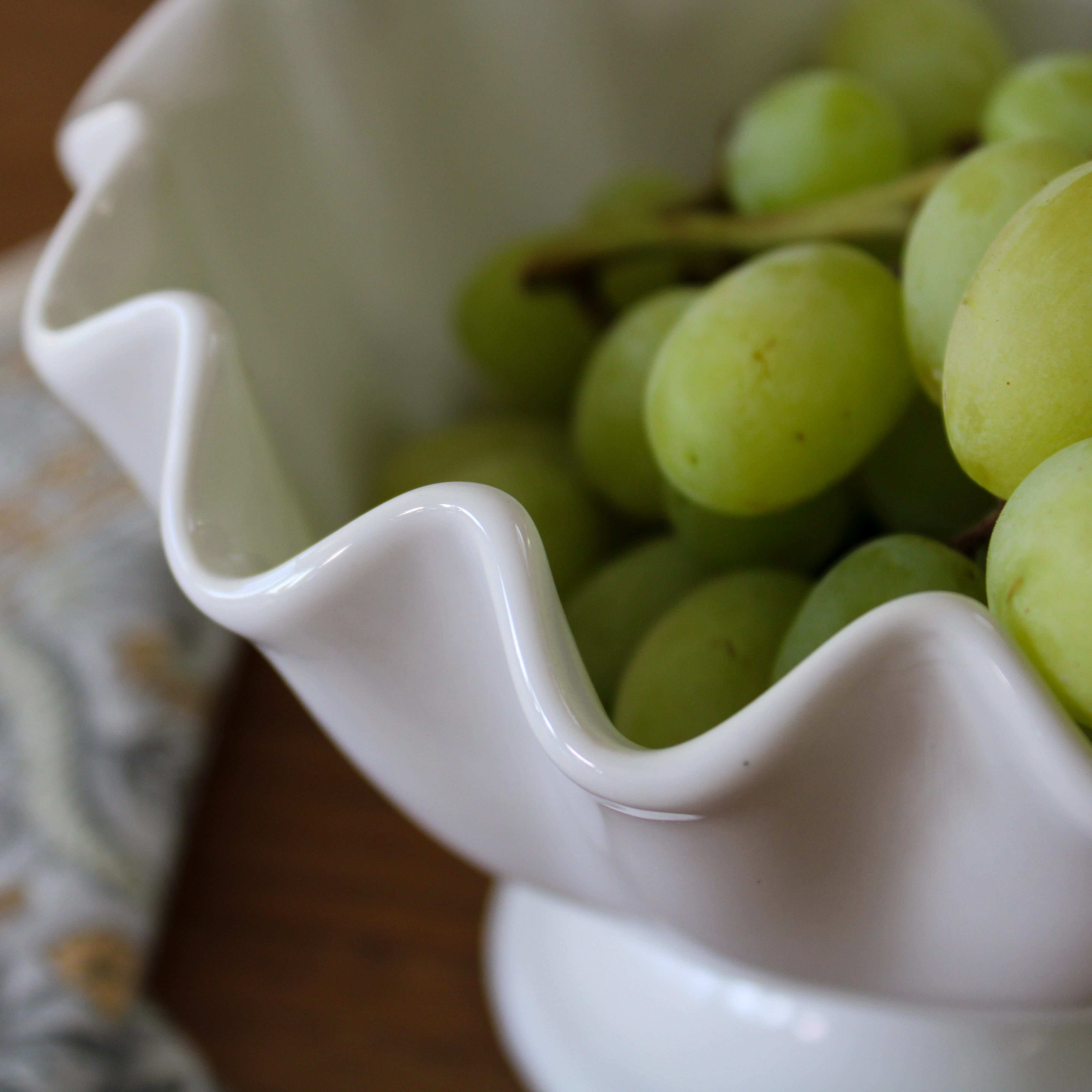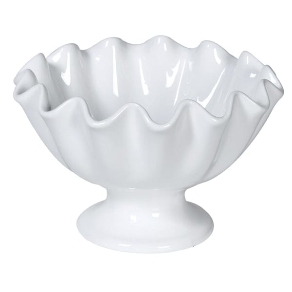 This white ceramic pedestal bowl with a beautifully ruffled edge is the perfect way to elevate your snacks or side dishes for a luxurious dinner table presentation. Showcase your culinary creations as if you were hosting a dinner party for the stars with this classy and chic finish. This is the kind of tabletop addition that will become an heirloom Christmas piece for years to come!