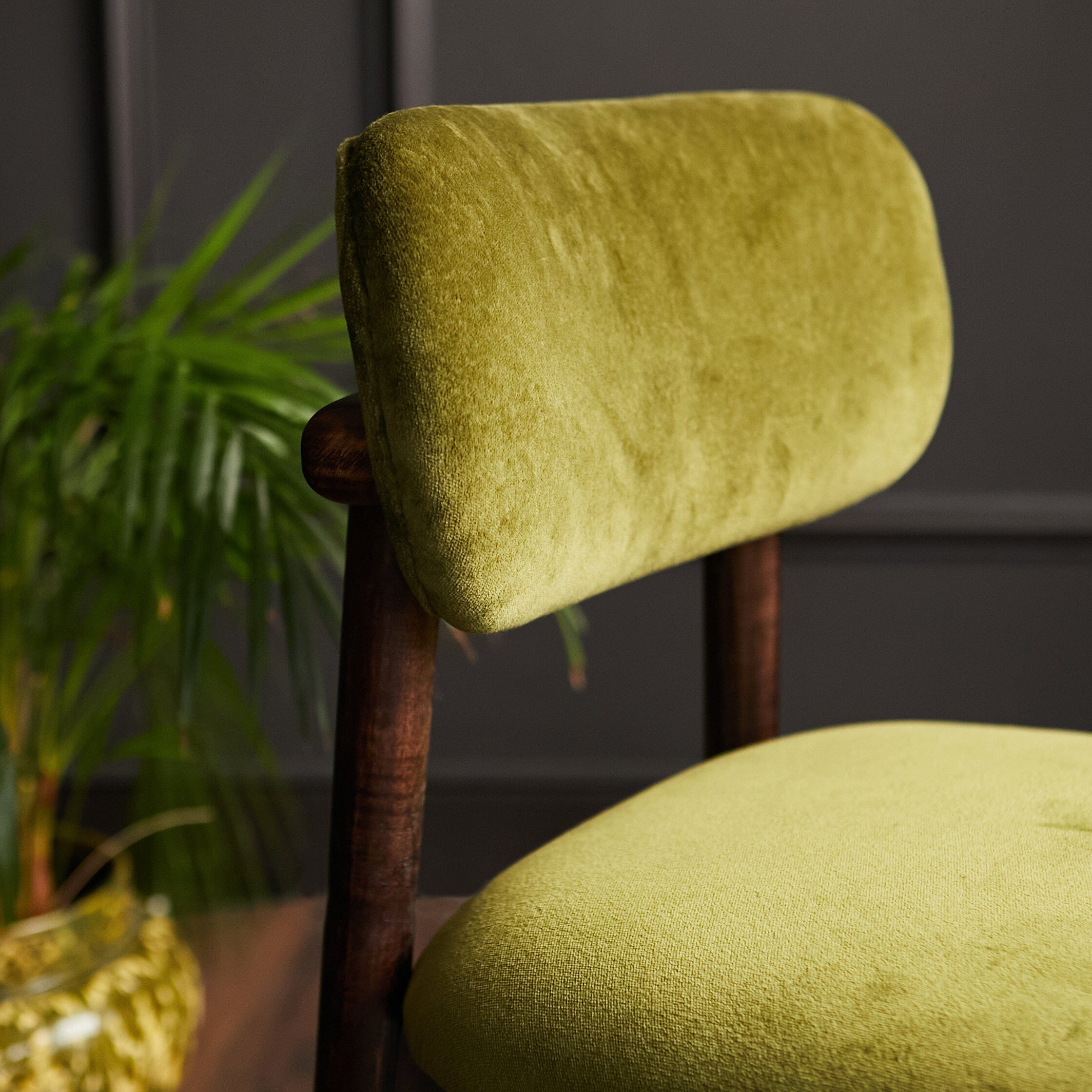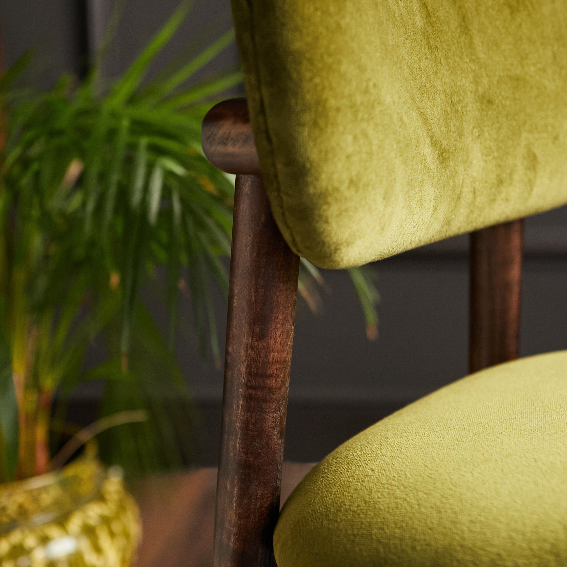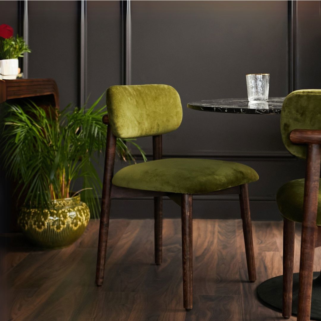Designed by us here in Dublin, this is a really chic dining chair. This green velvet dining chair has a soft padded seat and back rest to make sitting down for a long lazy lunch an absolute dream. The green velvet upholstery is all mounted on a gorgeous mid brown mango wood frame which has a beautiful cross bar behind the back rest which gives a superbly elegant appearance when around a table. These are chairs to be enjoyed and admired and we think you will love and cherish them for many many years into the future.