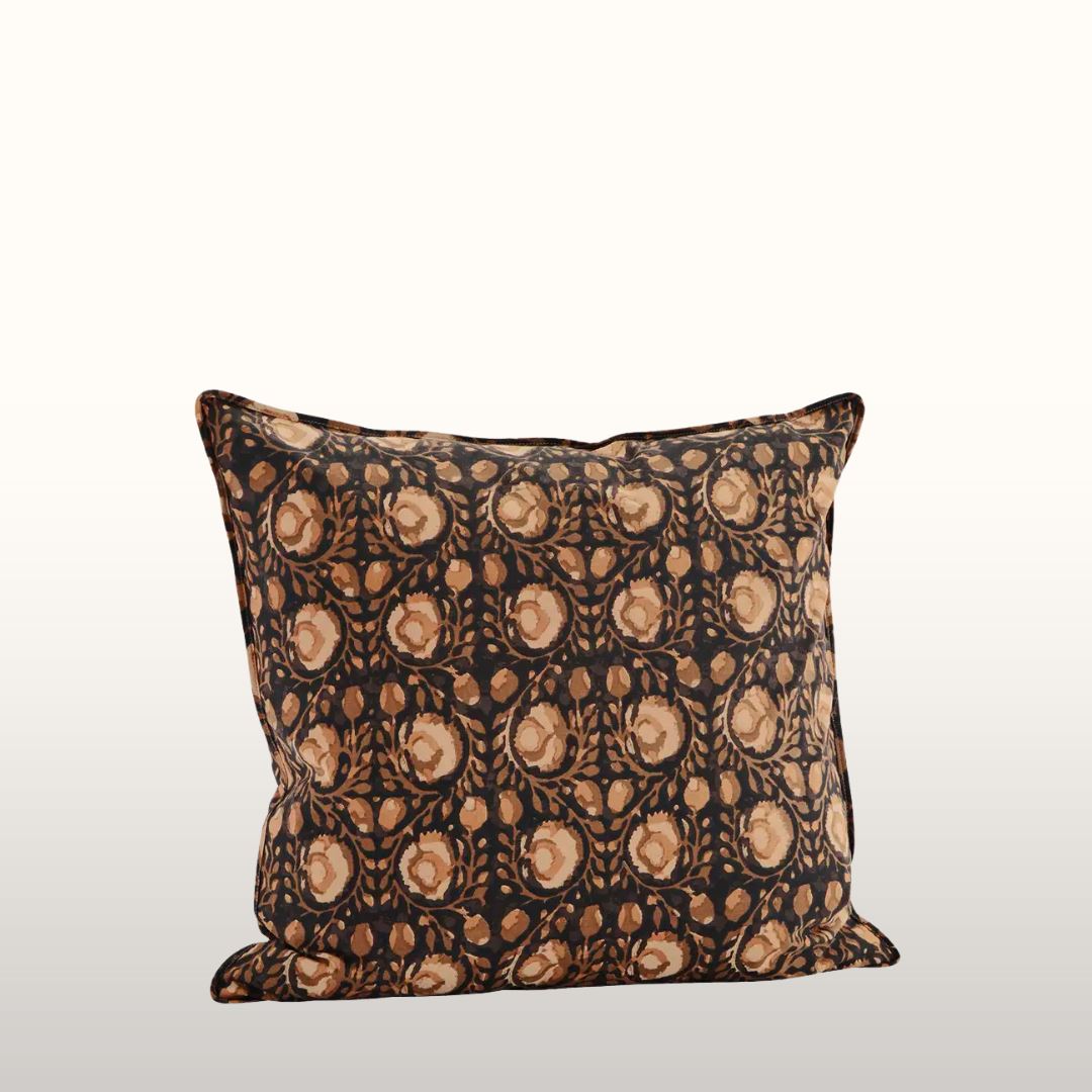 Gorgeous brown, orange and peach patterned cotton cushion.  This cushion would go really well with our caramel velvet cushions.  This cushion is 50cm by 50cm so is a good size for most seats and pairs well with our velvet square or baguette cushions.  Supplied with feather filler.