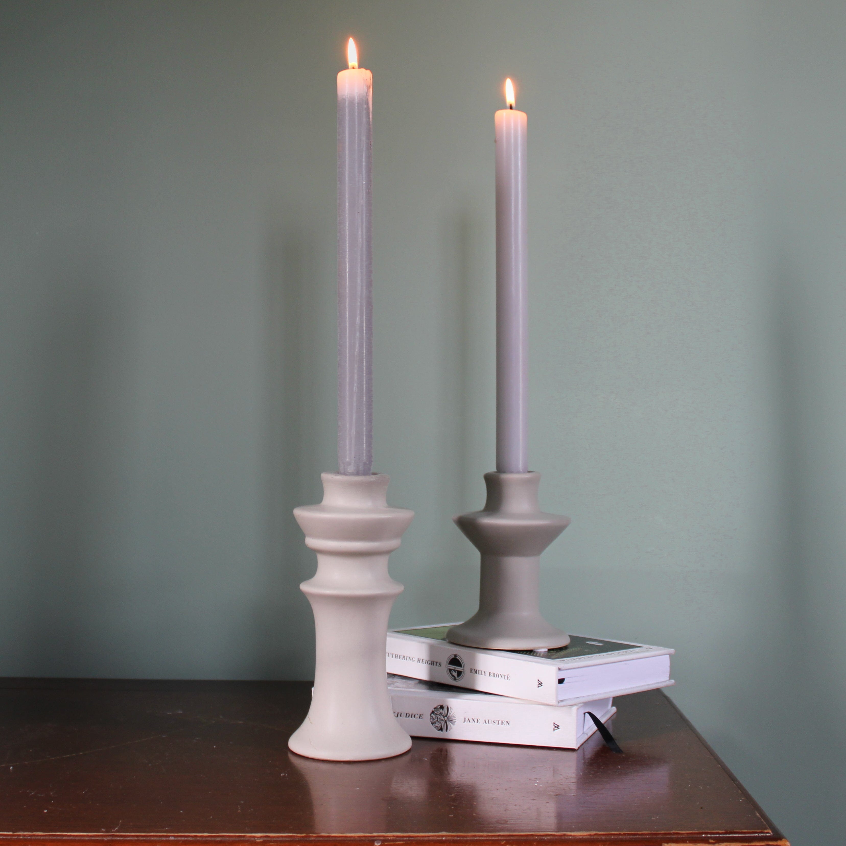 Diese Farbe ist ein dezentes und kühles Grau, perfekt für einen minimalistischen und tonalen Look, gepaart mit unseren hohen und kurzen Elfenbein-Kerzenständern .