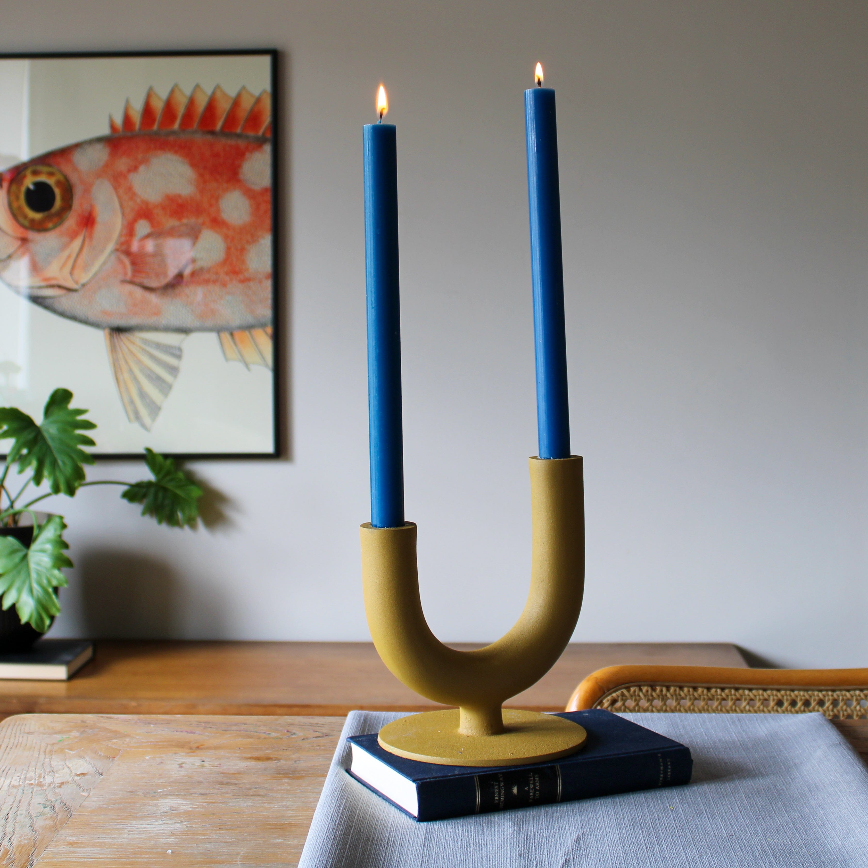 Der leuchtend blaugrüne Farbton würde in den meisten Farbschemata einen schönen Akzent setzen, passt aber besonders gut zu hellen und warmen Räumen. Aus diesem Grund sind wir der Meinung, dass er perfekt zu unserem ockerfarbenen Metallkerzenhalter passt!