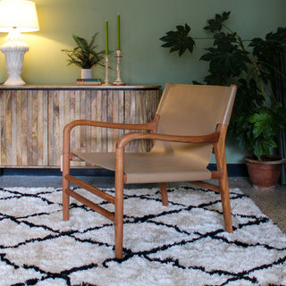 Tan Leather Wood Framed Armchair in Furniture from Oriana B www.orianab.com