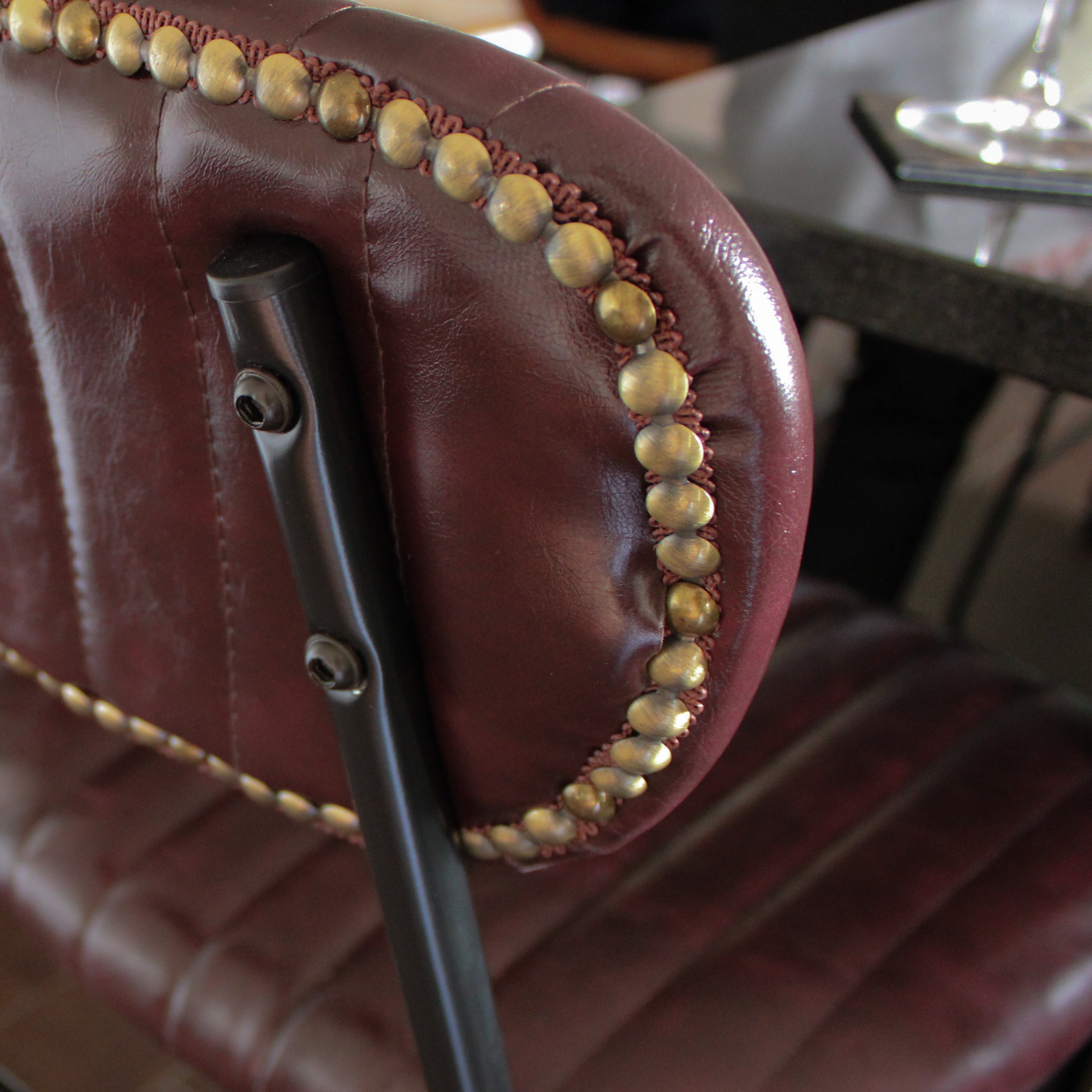 Wenn Sie Ihrer Bar etwas industriellen Chic verleihen möchten, dann ist dies der perfekte Barhocker für Sie. Der schöne mattschwarze, pulverbeschichtete Stahlrahmen wird perfekt durch den wunderschönen burgunderroten Kunstledersitz mit eingelassenen Kanaldetails und Messing-Metallnieten ergänzt. Dies ist definitiv ein Barsitz für eine coole Hausbar oder eine hohe Küchentheke, bei der ein wenig Design erforderlich ist, der Komfort jedoch nicht beeinträchtigt werden darf!