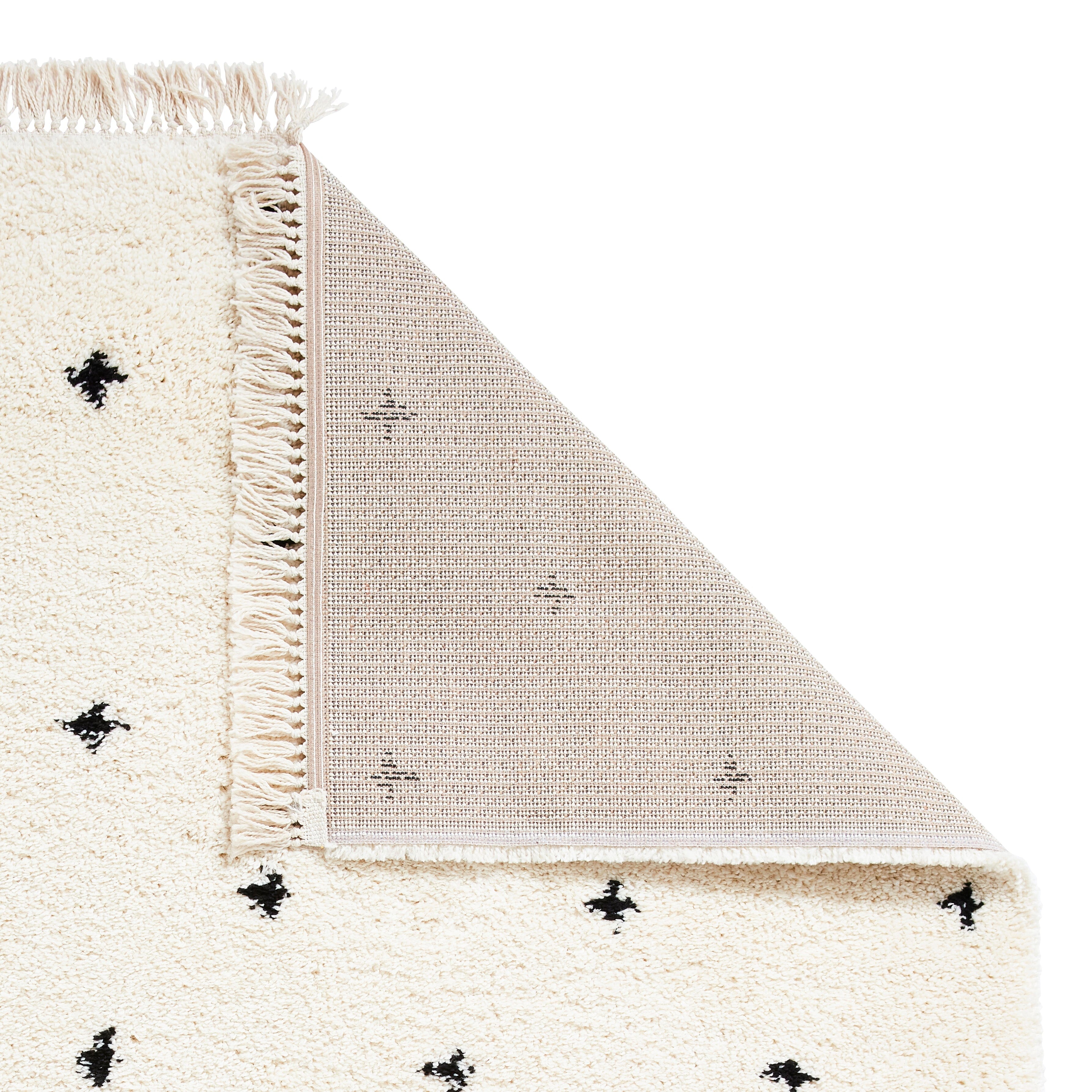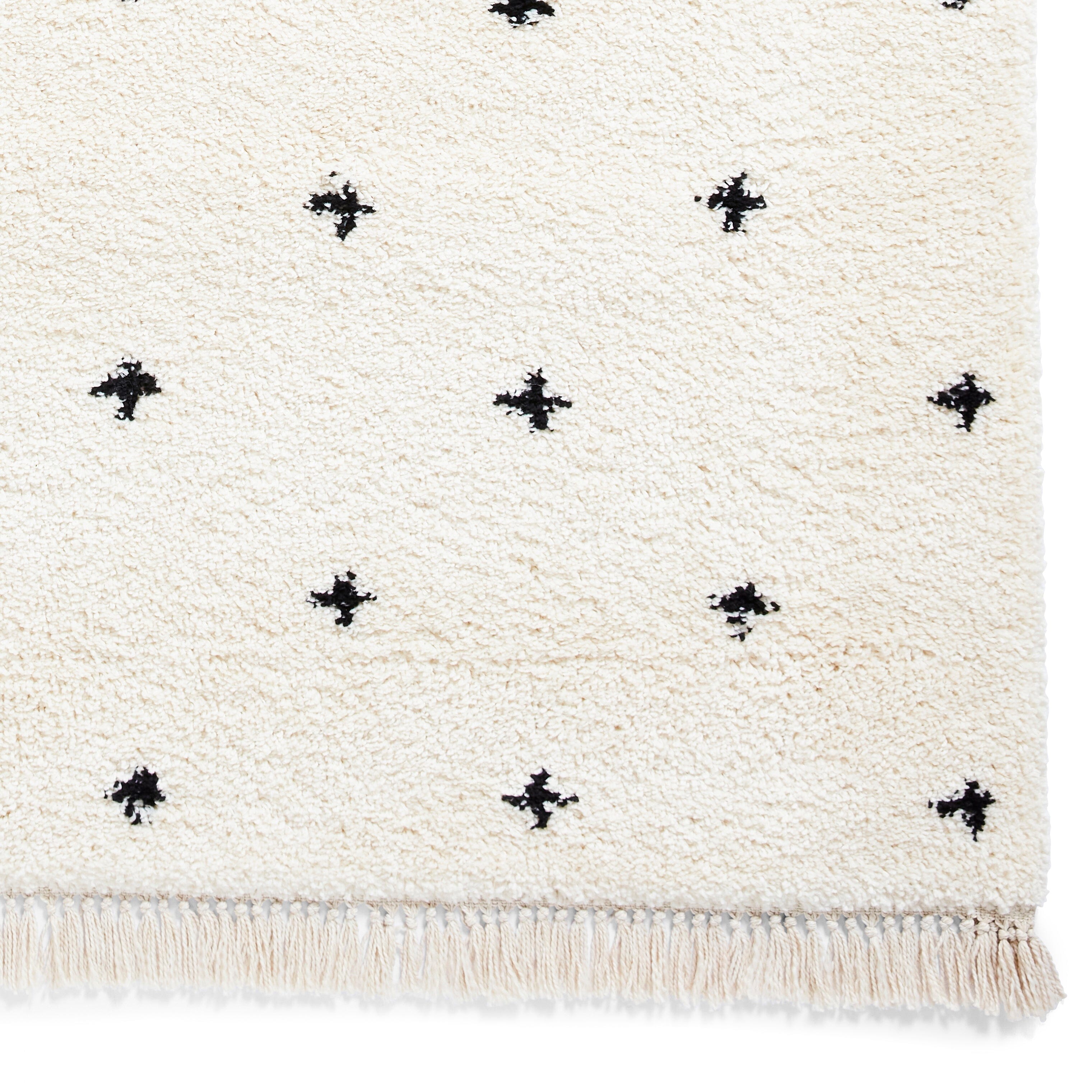 Verleihen Sie Ihrem Wohn- oder Schlafzimmer etwas Boho-Chic mit dem schönen einfarbigen Teppich mit Kreuzmuster. Diese schönen Teppiche haben einen angenehm weichen Griff und ein schlichtes Kreuzmuster, wodurch sie besonders gut in Innenräumen funktionieren, in denen Sie Ihren Böden ein dezentes Muster verleihen möchten. Das schwarz-weiße Muster fügt sich nahtlos in nahezu jedes Dekor ein und eignet sich besonders gut für eichenfarbene Böden. Besonders gut gefallen uns die Fransenkanten, die ihm den besonderen Boho-Appeal verleihen.