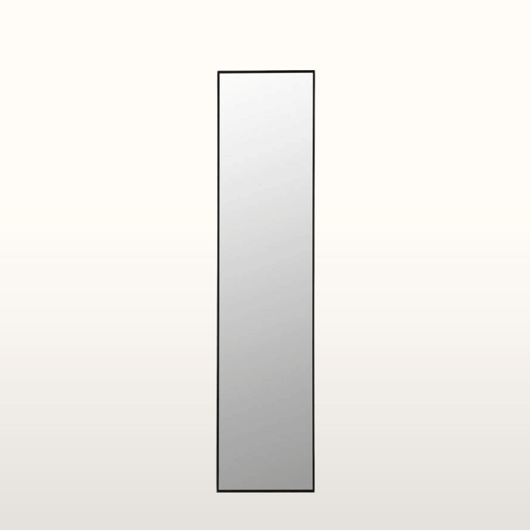 This is a tall slender black full length mirror that fits perfectly to the wall and is just the thing for a small space where you want a full size view. At 180cm height, this mirror is definitely going to reflect the whole of you so mount it close to the wall to get maximum benefit. It's so slender that it will easily fit onto narrow walls between doorways or windows - just the thing when you have limited space available!