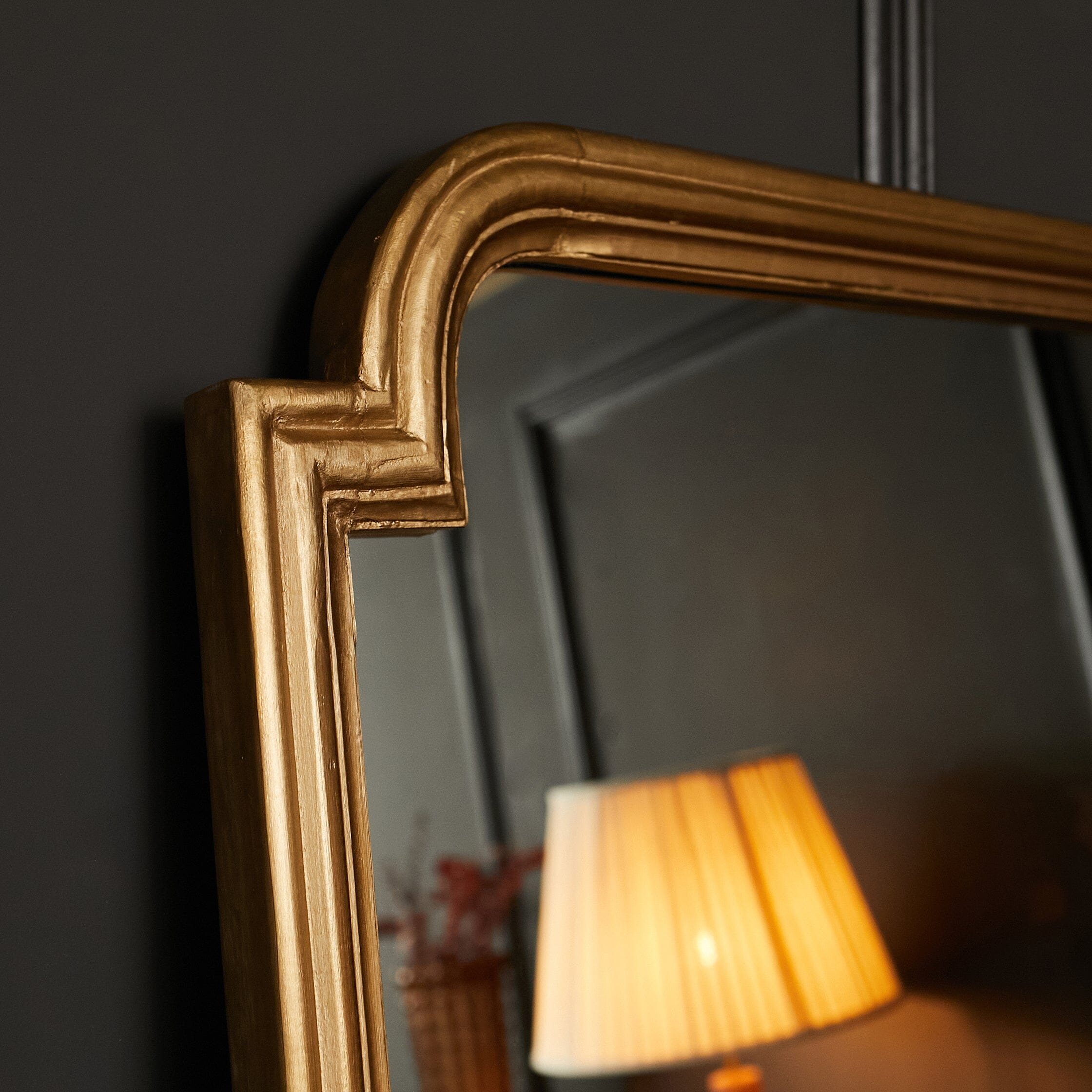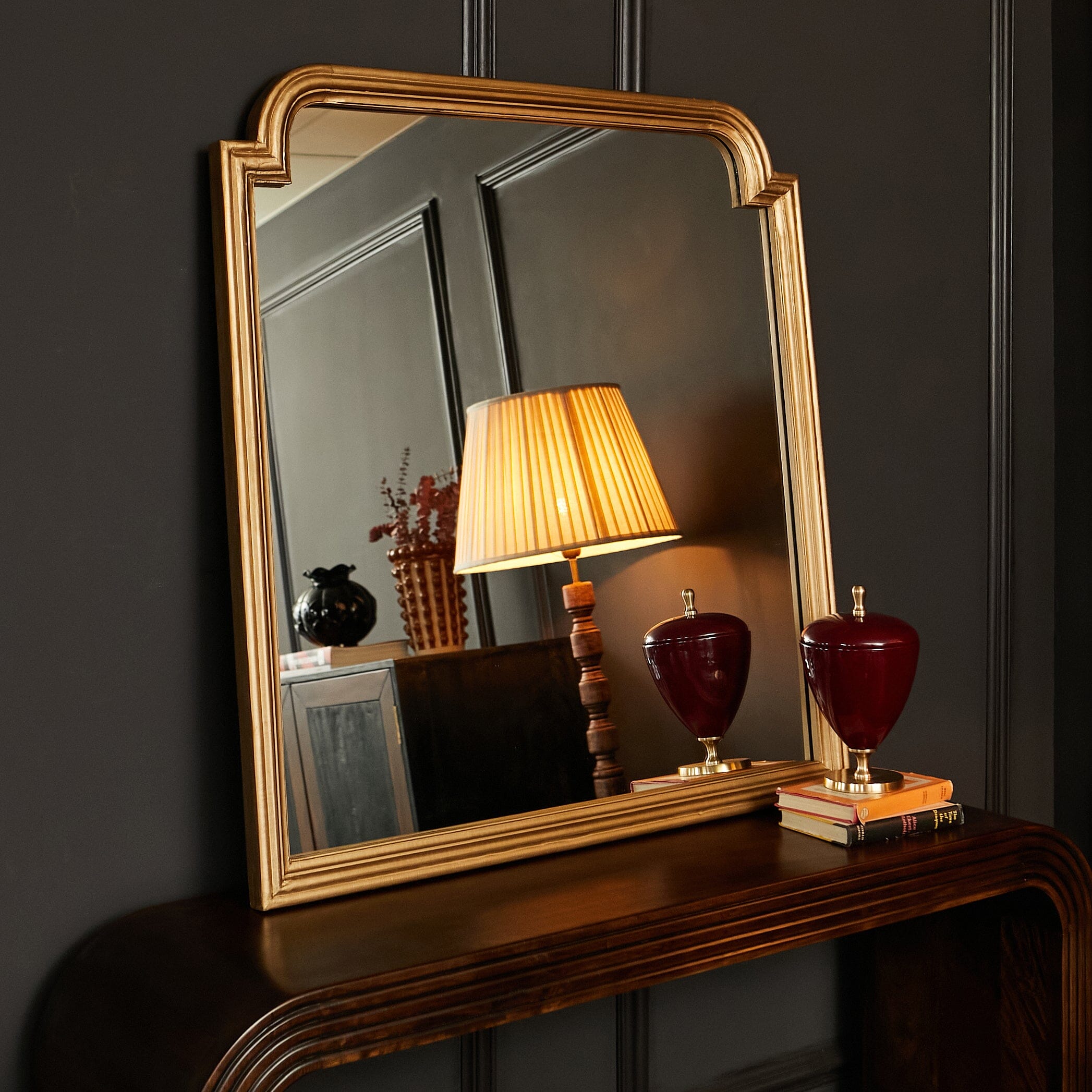 This is a minimalist yet deeply elegant portrait mirror that takes design inspiration from the 1920s to create a mature and timeless effect. We designed this mirror to have the perfect width for wider fireplaces and so that it will fit under picture rails with ease. The gold frame will stand out and give your fireplace a glamorous yet restrained uplift. The mantle mirror is also available with a black frame.
