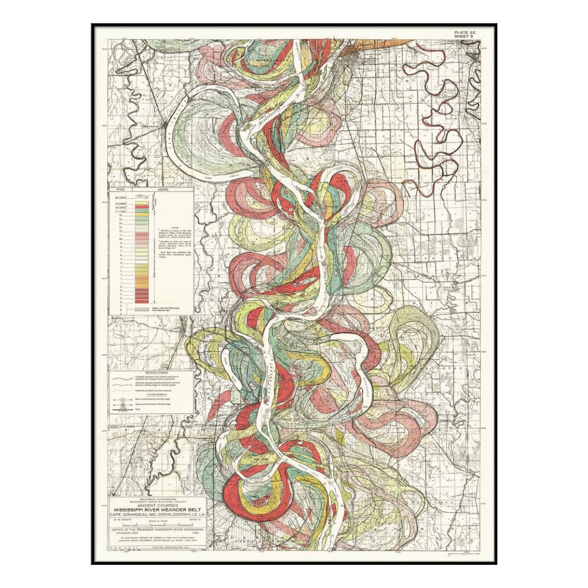 Der Mississippi ist nach dem Entwässerungssystem der Hudson Bay der zweitlängste Fluss und Hauptfluss des zweitgrößten Entwässerungssystems auf dem nordamerikanischen Kontinent. Dieser Druck ist einer von drei Drucken, die seine vielen Wendungen zeigen, die uns stundenlang fesseln können!