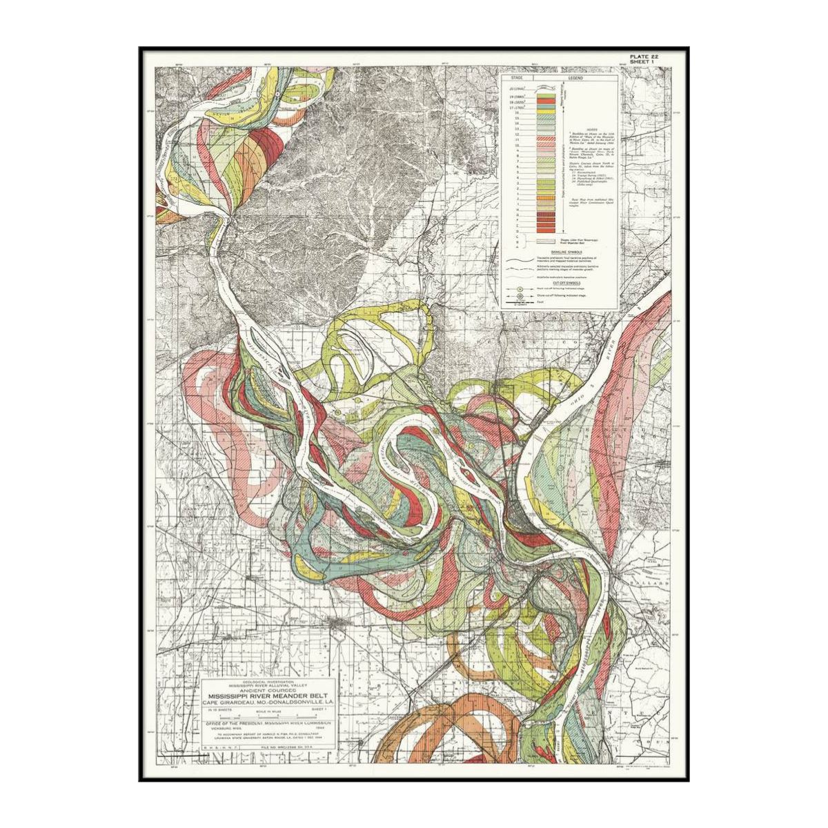 Der Mississippi ist nach dem Entwässerungssystem der Hudson Bay der zweitlängste Fluss und Hauptfluss des zweitgrößten Entwässerungssystems auf dem nordamerikanischen Kontinent. Dieser Druck ist einer von drei Drucken, die seine vielen Wendungen zeigen, die uns stundenlang fesseln können! Kombinieren Sie es mit Mississippi Meanders I und Mississippi Meanders III.
