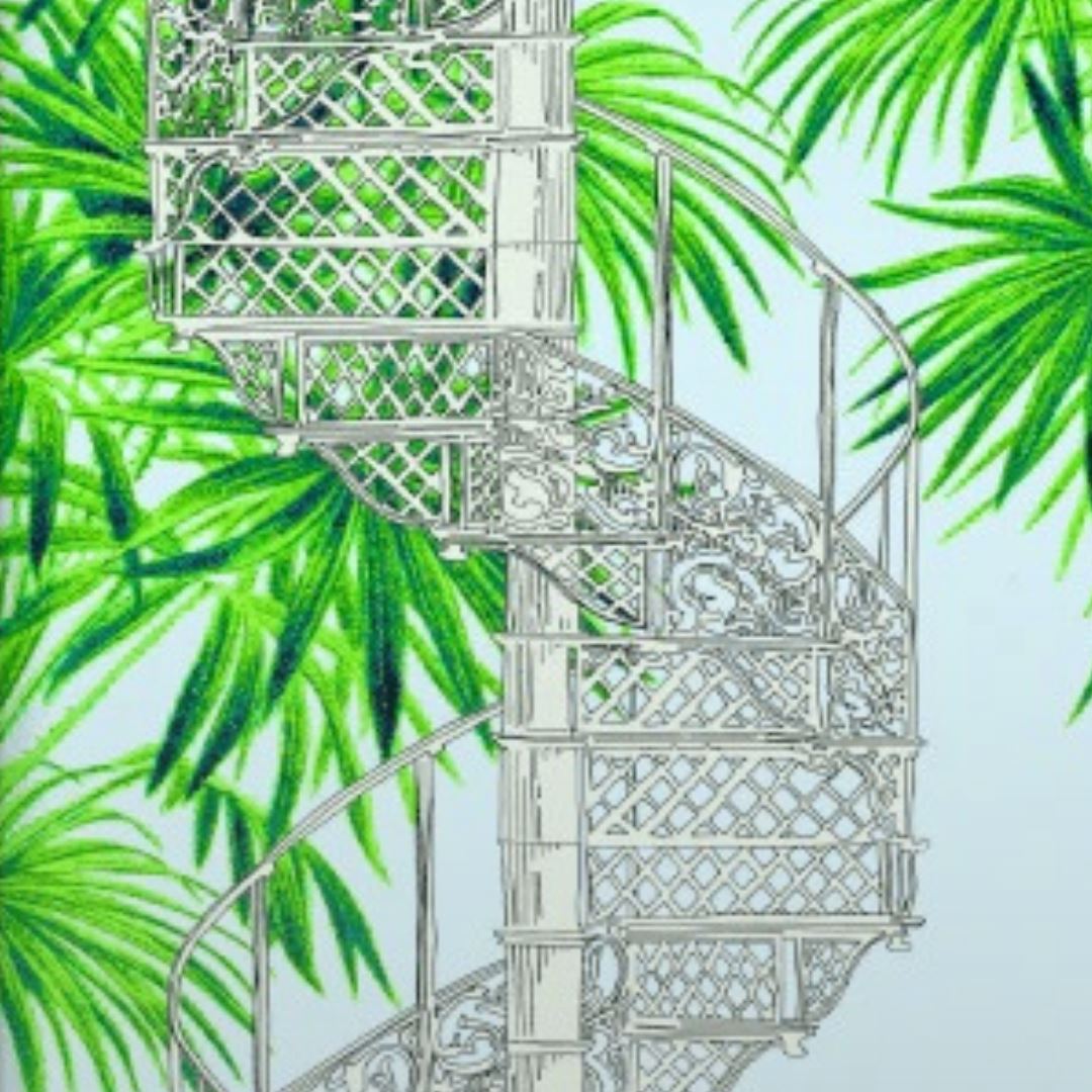 Diese sehr hübsche handgezeichnete Treppe von Copenhagen Palm House ist ein wunderschöner, langer botanischer Druck, der geradezu danach schreit, oben in einem Treppenhaus oder in einer besonderen Nische aufgehängt zu werden. Wir lieben die Art und Weise, wie es sofort Licht bringt, dunkle Ecken hinterlässt und wunderschön hervorsticht.