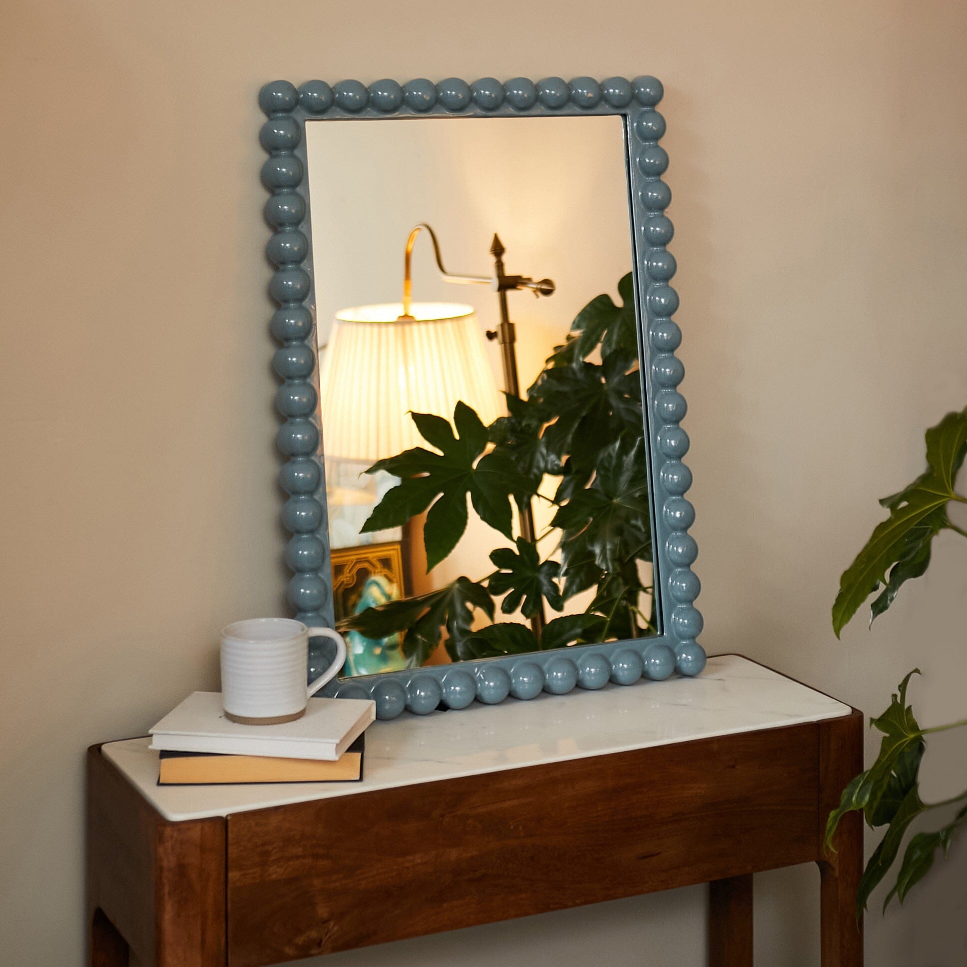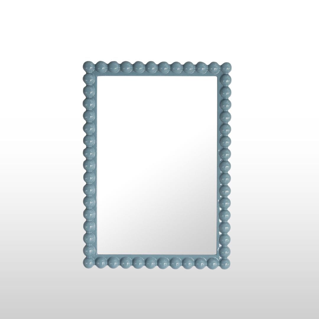 Add the cool beauty of our sky blue lacquer bobbin mirror to your home and create some serious drama in a small space!  These smaller versions of our exclusive bobbin mirrors are ideal for small bathrooms, bedroom vignettes and small dressing areas giving you that much needed stroke of whimsy and playfulness.