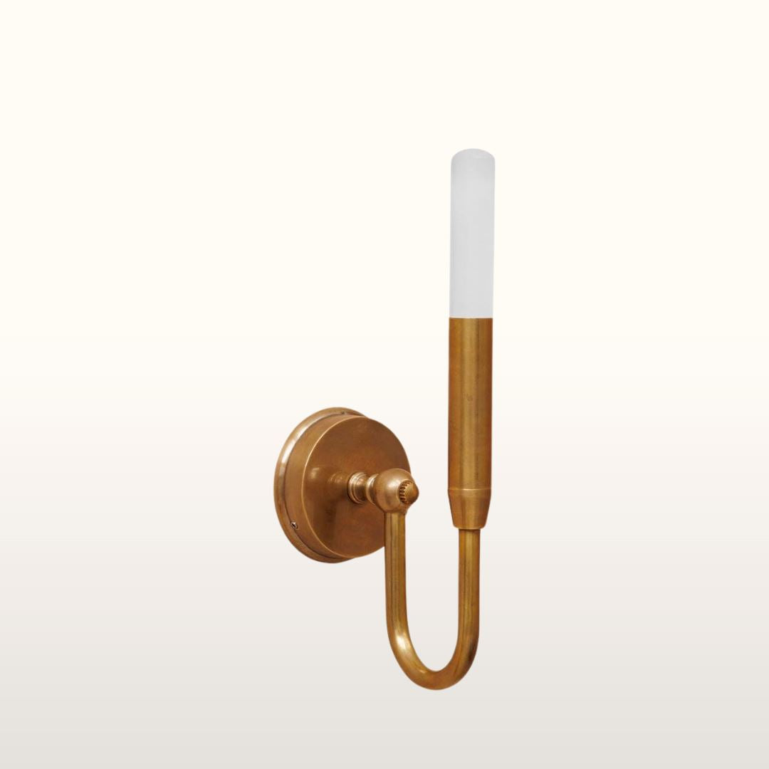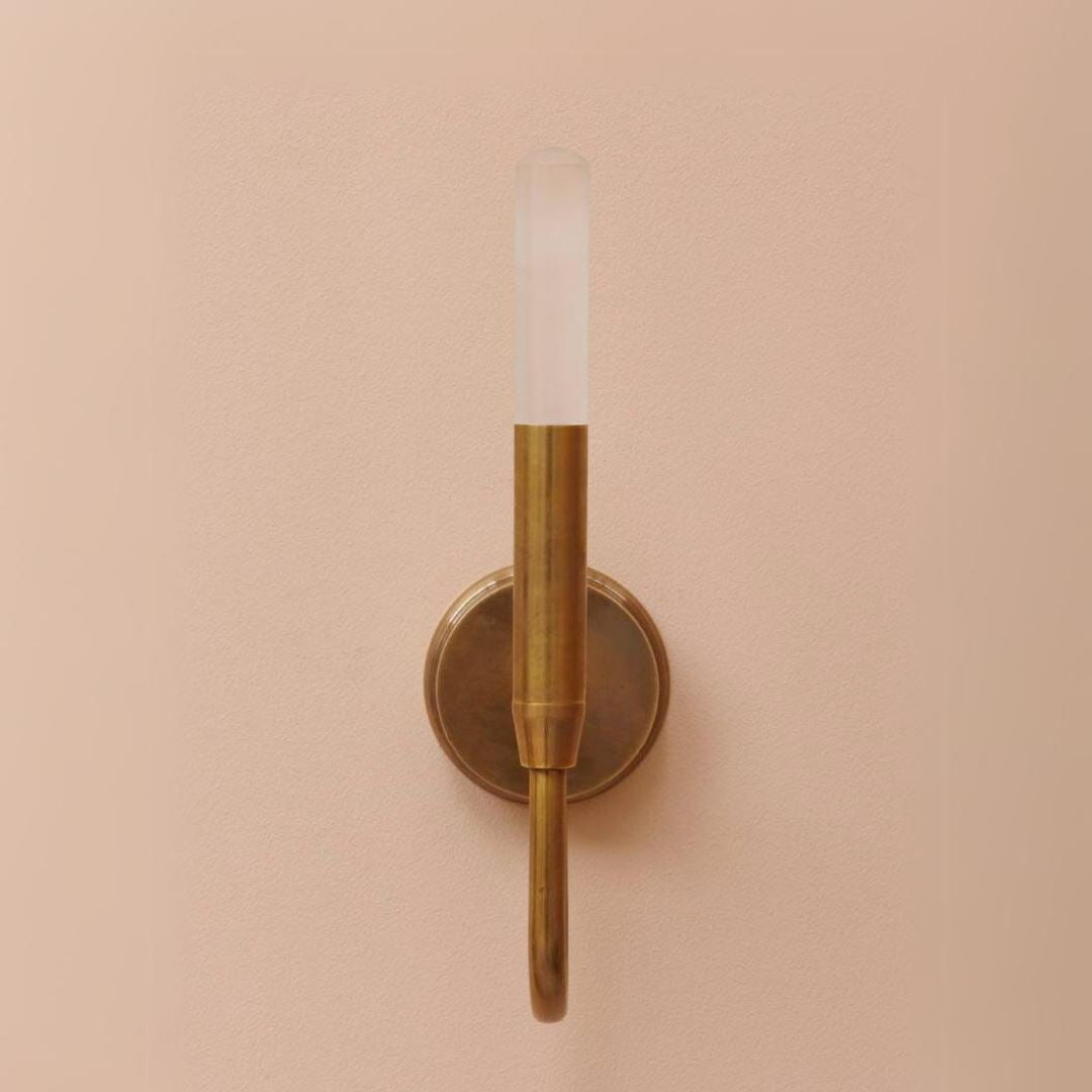 This modernist take on the classic brass wall light is minimalist's dream! The brass fitting has all the right colour and texture yet the tubular candle shaft is a nod to the modern aesthetic producing a perfect ray of light! This would work so well in a hallway or a cloakroom where space is at a premium. The acrylic light shade will diffuse light beautifully and give a warm generous glow.