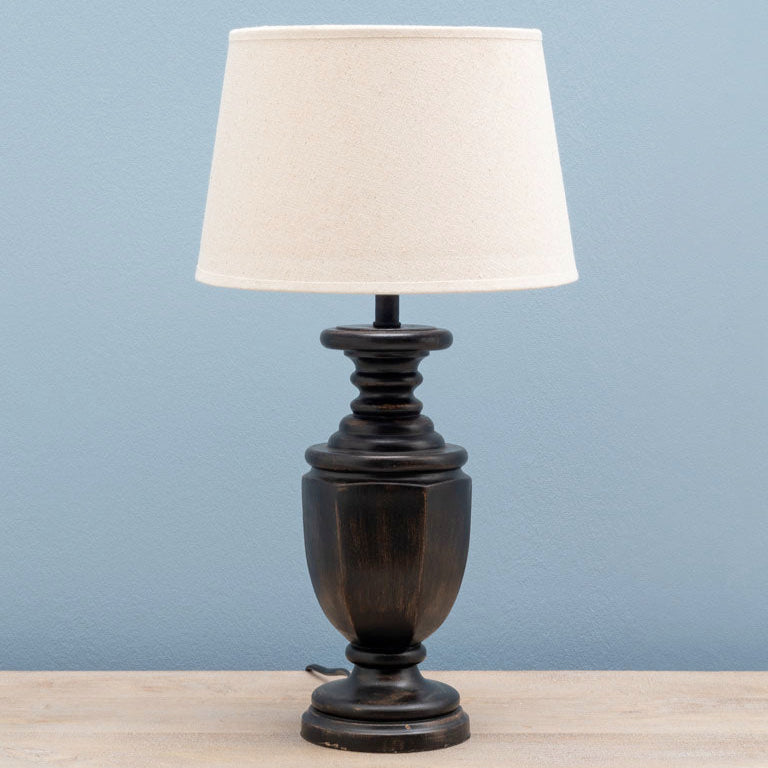 Diese süße kleine Urnen-Tischlampe ist eine wunderschöne Ergänzung für jede Konsole oder jeden Beistelltisch. Es handelt sich um eine zierliche Lampe, die problemlos in die meisten Räume passt und sich in fast jedes Farbschema einfügt. Wir lieben den dunkelbraunen Holzsockel gepaart mit dem cremefarbenen Leinenschirm. Dies wäre eine fantastische Nachttischlampe, da sie weiches, warmes Licht abgibt und auf die meisten Nachttische passt.