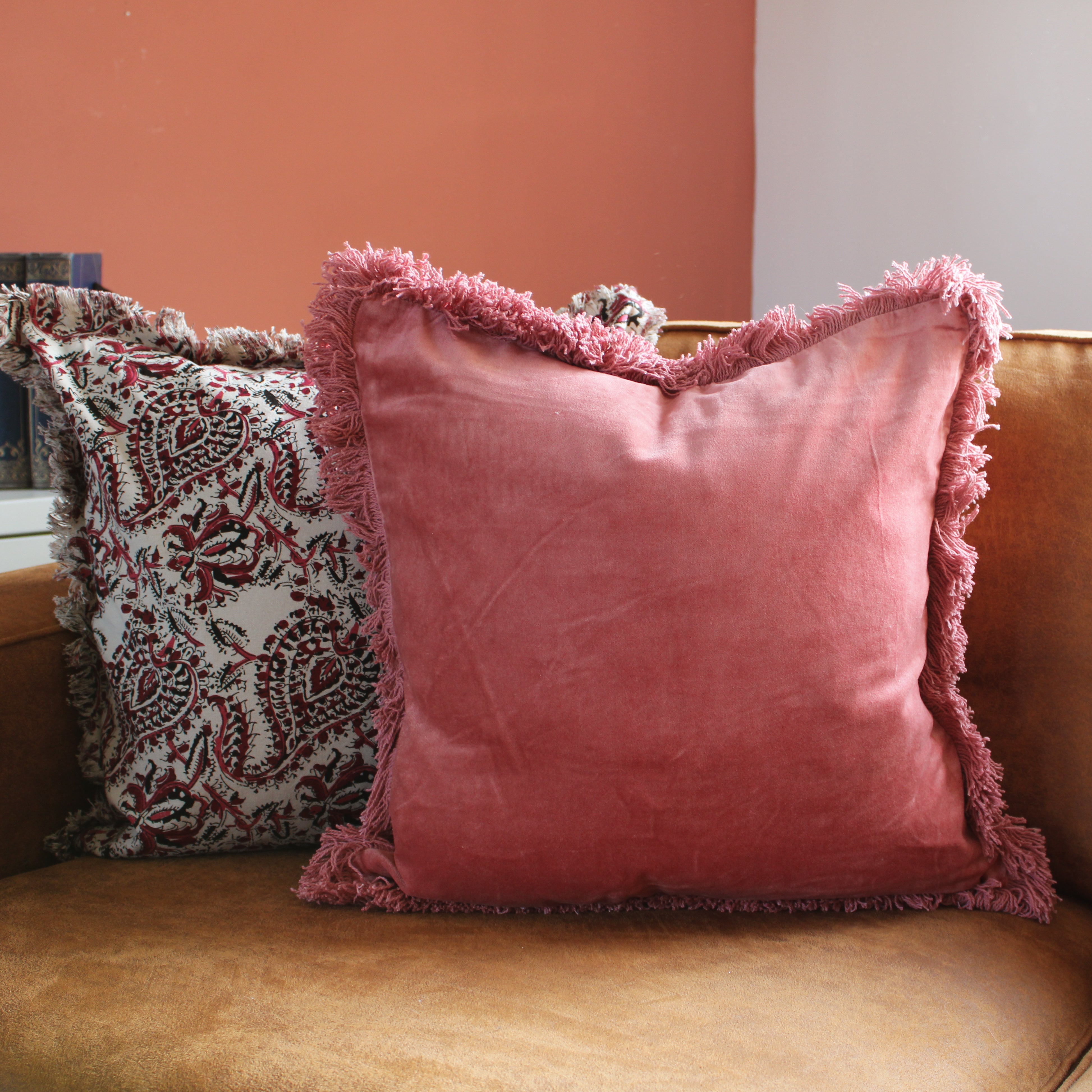 Dieses wunderschöne, pralle Kissen ist genau das Richtige, um Ihrer Sofasituation ein wenig Luxus zu verleihen. Der weiche Samt in Kombination mit den wunderschönen dicken Fransen an den Seiten machen dieses Kissen zu einem köstlichen Stück, in das man eintauchen kann. Der rosige Rosaton ist eine warme Ergänzung, die wunderbar zu den meisten Farbschemata passt, aber unserer Meinung nach besonders gut zu ähnlichen warmen Tönen passt. Der Füllstoff besteht aus Federn, wodurch sich dieses Kissen leicht aufpolstern lässt!