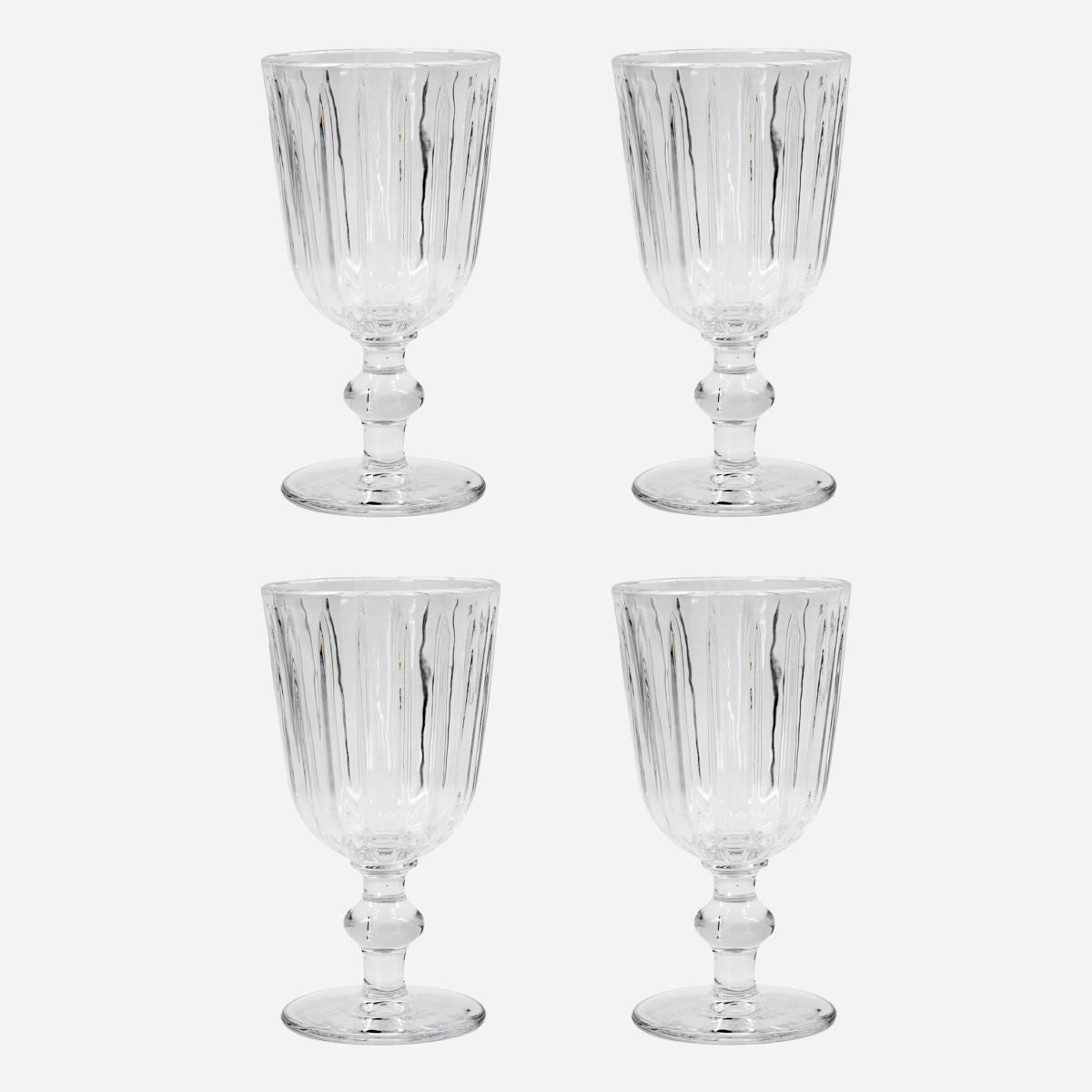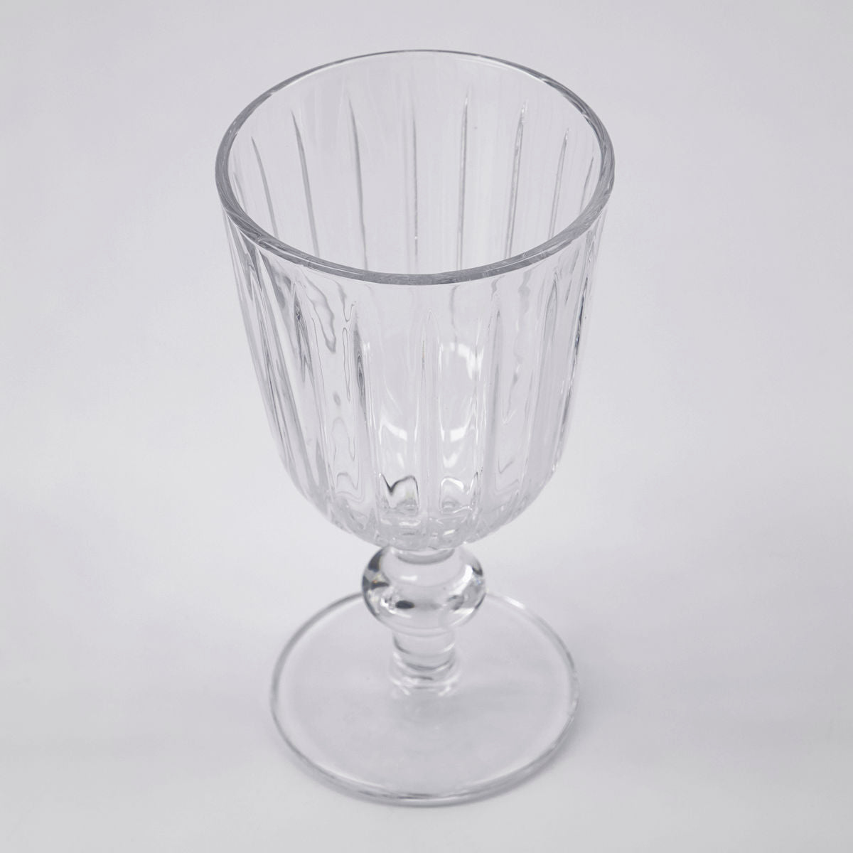 Genießen Sie Ihren Wein stilvoll mit diesen wunderschönen gerillten Weingläsern. Diese wunderschönen Gläser wirken modern und gleichzeitig barock, was ihnen eine leicht theatralische Atmosphäre verleiht, die in guten Zeiten verwurzelt ist! Wir lieben den kürzeren geformten Stiel und das tiefe Glas, das mit Rotwein gefüllt einfach fantastisch aussieht ... definitiv ein Glas, das man mit Freunden und Lieben teilen kann.