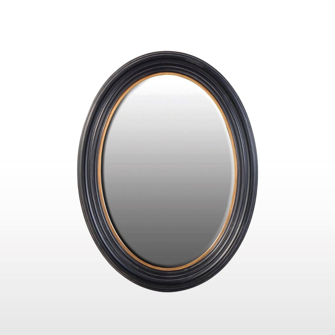 Verleihen Sie Ihrem Zuhause einen Hauch von klassischem Stil mit diesem schönen großen schwarzen ovalen Spiegel. Dieses auffällige Stück verfügt über einen dicken, schwarz-goldenen Stufenrahmen und ist somit der perfekte Mittelpunkt für jeden Flur oder über Ihrem Kamin. Der dicke Stufenrahmen ist eine aussagekräftige Interpretation des klassischen Looks und macht ihn zum perfekten Stück für Maximalisten, die gerne mit ihrer Inneneinrichtung spielen.