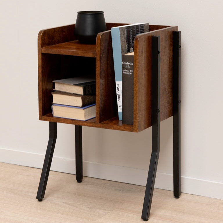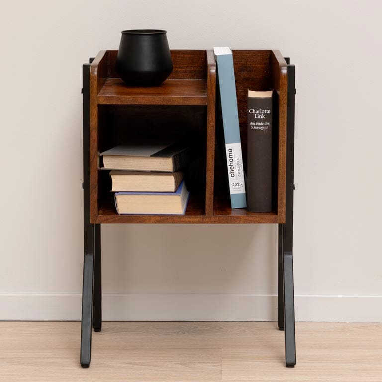This is an extremely charming piece of furniture which has plenty of functionality and style to boot.  This piece could easily be used as a side table next to a sofa or against a wall in a room where you would like a little bit of open storage. It could also make a great nightstand for the book-lover with space for novels and larger tomes!