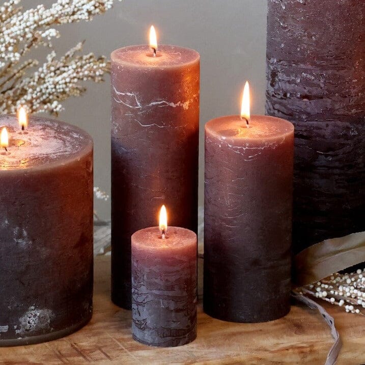 These pillar candles have a slightly rustic finish and a solid colour throughout which we think really makes the most of their charm. We love the deep brown/black shade of these candles, when lit they give a subtle warm glow and the textured finish makes for a striking table top display in a trinket dish or in a lantern. These candles come in three sizes for mix and match displays. The burn time ranges from 16 hours (8cm) to 90 hours (15cm), making these candles an excellent choice for those who like to relax by candlelight!