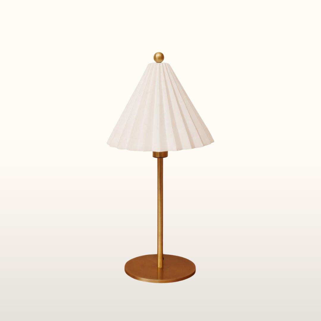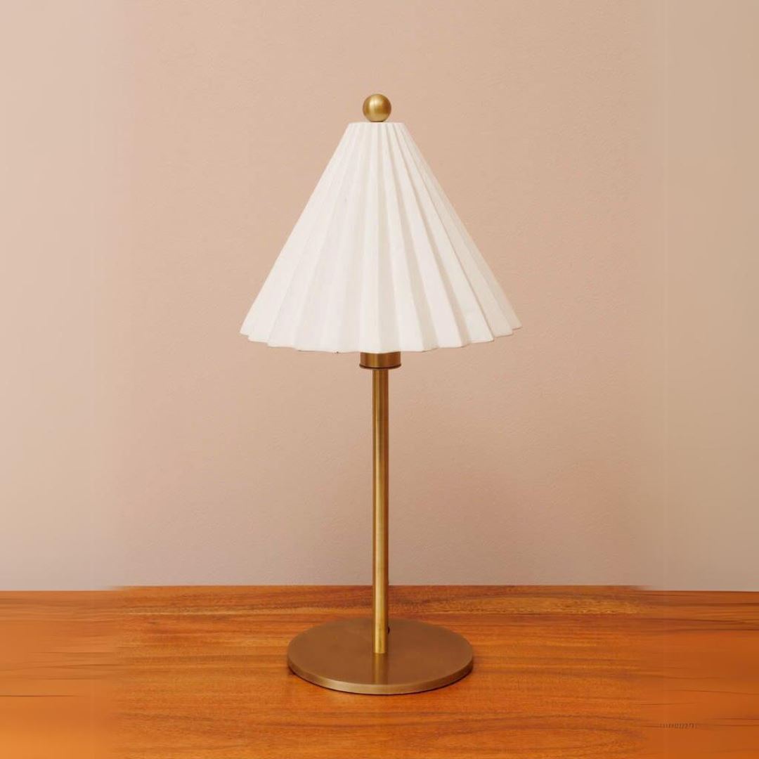 We immediately fell in love with this beautiful lamp, the stunning crenellated porcelain shade is so unusual and completely adorable!  It has a lovely relaxed brass stand with a very cute fitting that sits above the shade.  This lamp absolutely packs a punch for it's size and the porcelain gives it a very pleasing weight.  Style this lamp in a bedroom for a pretty picture or use it in a hallway or on a bookshelf where you want that extra bit of luminosity.