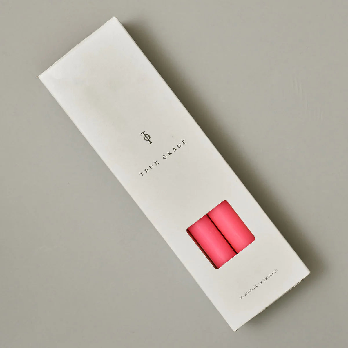 True Grace Dinner-Kerzen zeichnen sich durch kräftige, lebendige Volltonfarben aus. Diese fantastischen Kerzen werden im Vereinigten Königreich von Hand gegossen und brennen ganze 12 Stunden lang, was sogar die ausgelassenste Dinnerparty überdauern dürfte! Wir haben festgestellt, dass sie praktisch tropffrei sind und die leuchtende Farbe während der gesamten Brenndauer anhält.