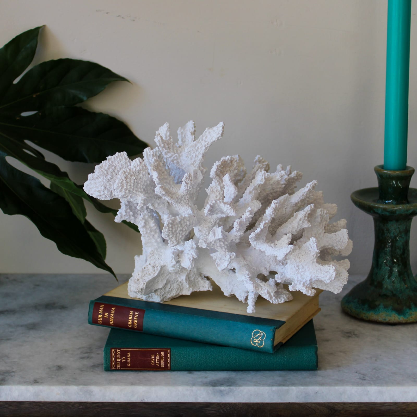 Platzieren Sie dieses schöne Ornament auf einigen Büchern oder neben einer glatten Vase, um einen atemberaubenden Kontrast zu erzielen. Die Möglichkeiten dieses vielseitigen Stücks sind endlos. Ganz gleich, ob Sie Ihrem Dekor einen Farbtupfer verleihen oder eine Strandatmosphäre in Ihrem Zuhause schaffen möchten, unser orangefarbenes Kunstkorallen-Ornament ist die perfekte Wahl.