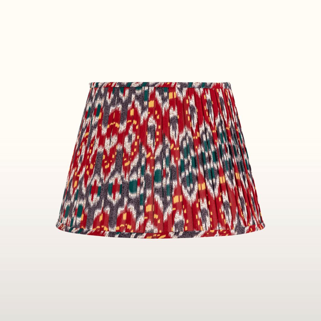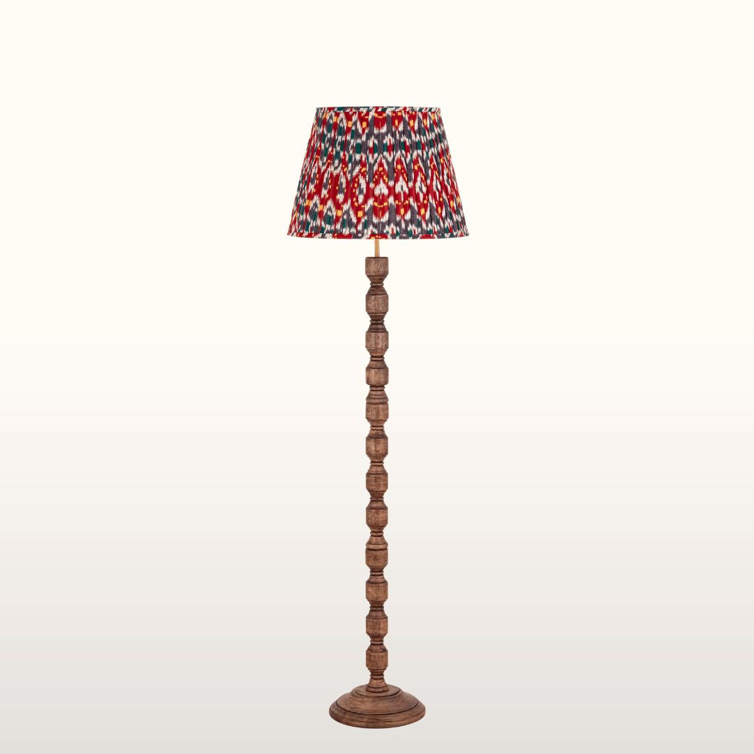 This is a stunning decorative floor lamp that will give an instant considered wow factor to your home.  The handmade wooden base is beautifully turned and stained a warm inviting brown.  This floor lamp is accentuated with a pleated red and blue shade that will add a richly decorative accent to your interior and really stand out.  We would recommend this lamp to pair with blue or neutral colour schemes where it can really sing.