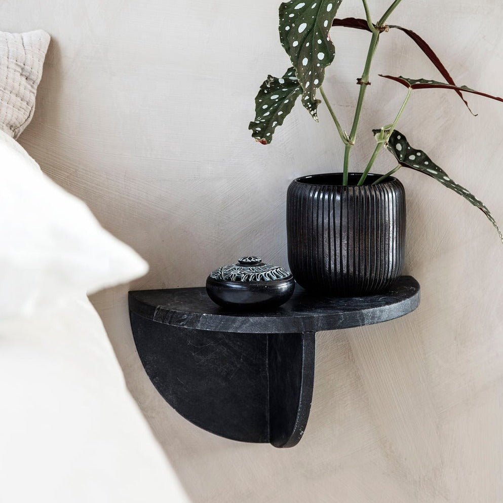 Parfois, trouver de l'espace pour une table d'appoint peut être incroyablement difficile et c'est là qu'intervient cette magnifique pièce murale. Fabriqué en marbre noir massif, ce design élégant est tout simplement parfait comme table d'appoint dans une chambre ou comme petite table d'appoint d'entrée lorsque l'espace est limité. Le design est époustouflant par sa simplicité avec un joli plateau en marbre en forme de demi-lune et un quart de support latéral en dessous.
