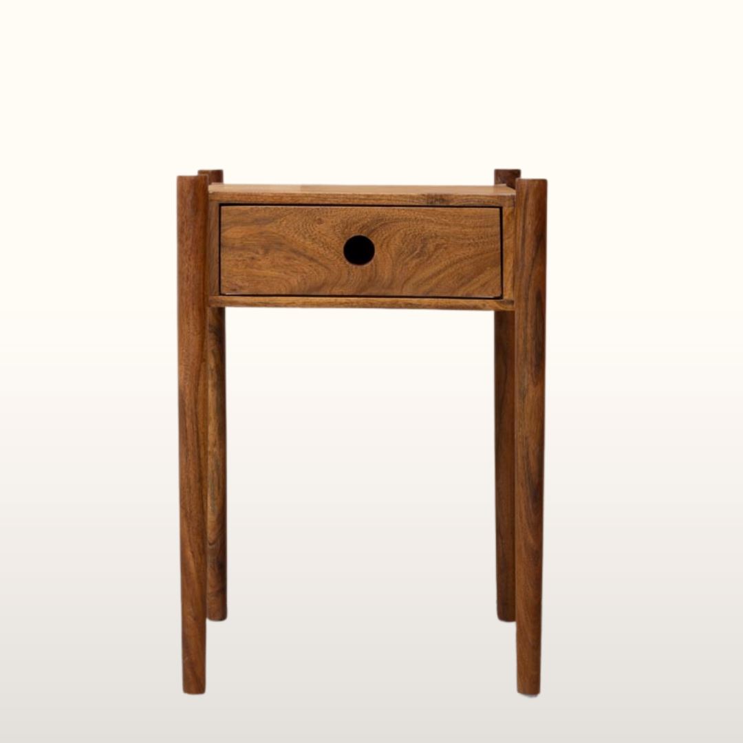 C'est une table de chevet fabuleusement chic ! La forme tout à fait magnifique est simple dans sa conception mais avec des touches magnifiquement réfléchies comme les pieds arrondis et les découpes de taille proportionnelle comme poignée de tiroir. Nous aimons le grain fort du bois de manguier. Il fonctionne à merveille comme une solution minimaliste pour une table de chevet ou une table d'appoint de canapé. Placez une lampe dessus et un panier en dessous avec des tissus d'ameublement pour ajouter un style texturé pour contraster avec cette pièce simple.
