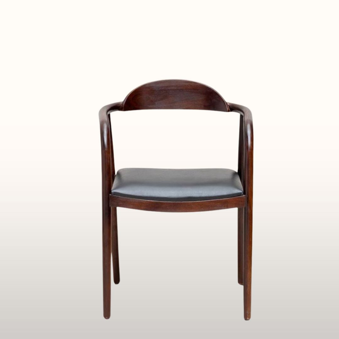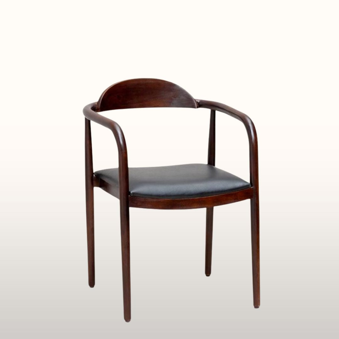 Indulge in luxury with our Dark Wood Polished Carver Dining Chair. With its sloping bentwood arms and half moon back, this chair is a fabulously elegant and sophisticated dining chair. The tapered legs and black leather seat add to its elegance. Finished with polished dark wood, it offers a chic take on mid-century inspired design and we could see many dinner parties carrying on long into the night on these beauties!