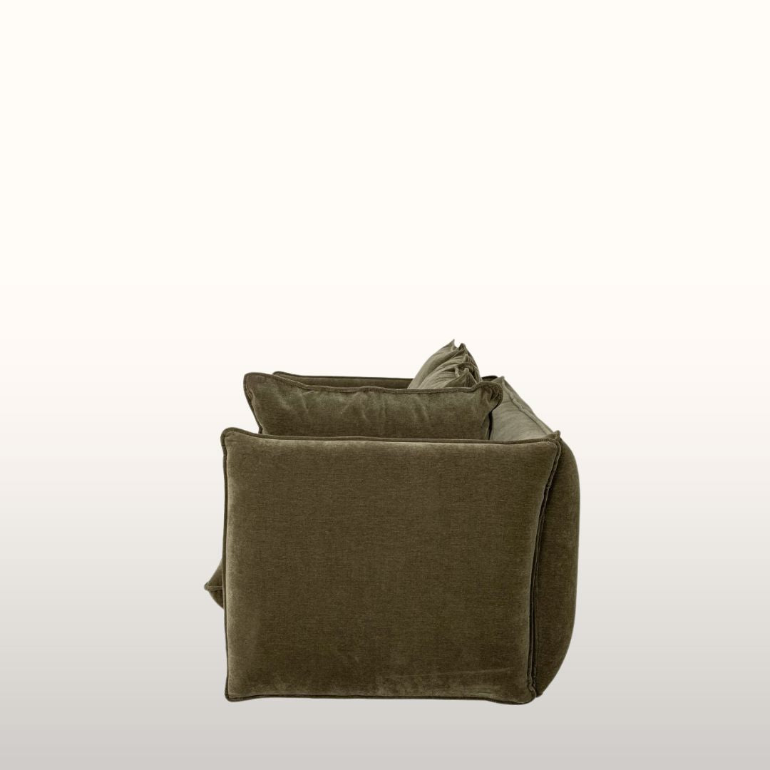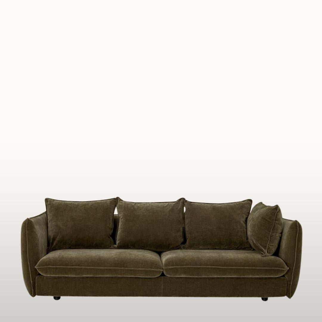 Our Green Contemporary Sofa is the perfect blend of modern luxury and comfort. Made with soft, delicious velvet in a dark, dusty green colour, this sofa is not only pleasing to the eye but also extremely comfortable. Four back cushions provide ample support while the elegant design adds a touch cool and unusual design to living spaces. Crafted with 50% polyester and 50% recycled polyester fabric for added sustainability. This sofa is available in a large three seater size of 228cm, perfect for busy homes and big families. This sofa will be ready to ship in 6-8 weeks.
