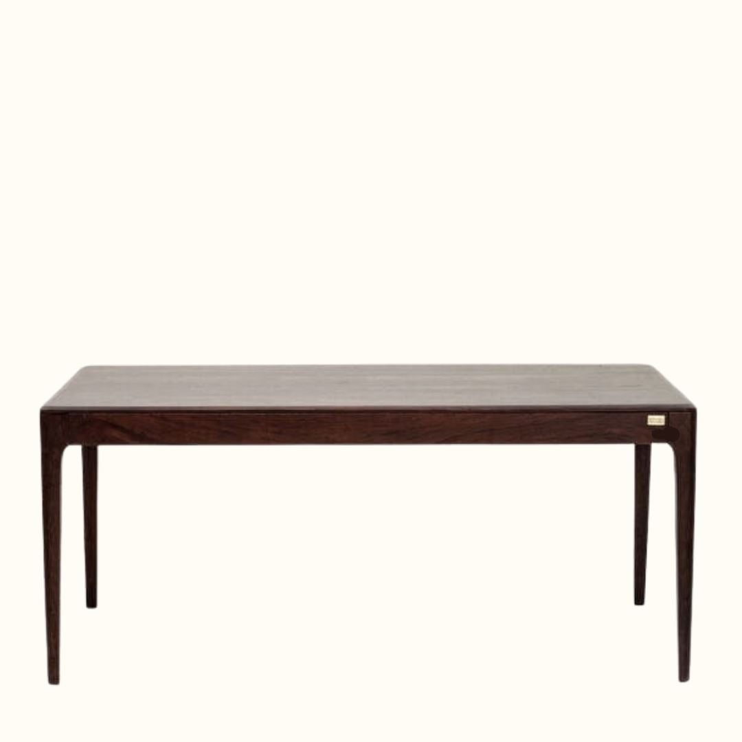 This rich brown dining table will add warmth and depth to your home. Crafted in mango wood, this table has a contemporary and relaxed vibe with its clean lines, lovely jointed corners, faceted edges and rounded edges. This makes it absolutely perfect for adding some fabulous dining chairs and creating a dining set up that you won't want to leave! This table is a good height at 76cm meaning it will work with dining chairs of about 45cm seat height. At 200cm x 100cm, this is a great size for medium to large size dining rooms or kitchens and should allow for 8 people to dine together comfortably.