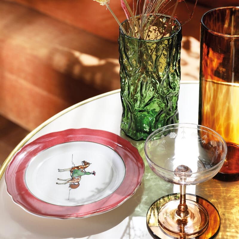 Élevez les compositions florales de tous les jours à un nouveau niveau avec ce petit vase exquis. Fabriqué à partir de verre vert texturé, le vase est suffisamment petit pour tenir confortablement sur une étagère ou une cheminée, mais son design unique dégage une sophistication sans effort qui élève même le bouquet le plus simple. Un ajout exquis à votre décoration intérieure ou à votre collection de cadeaux.