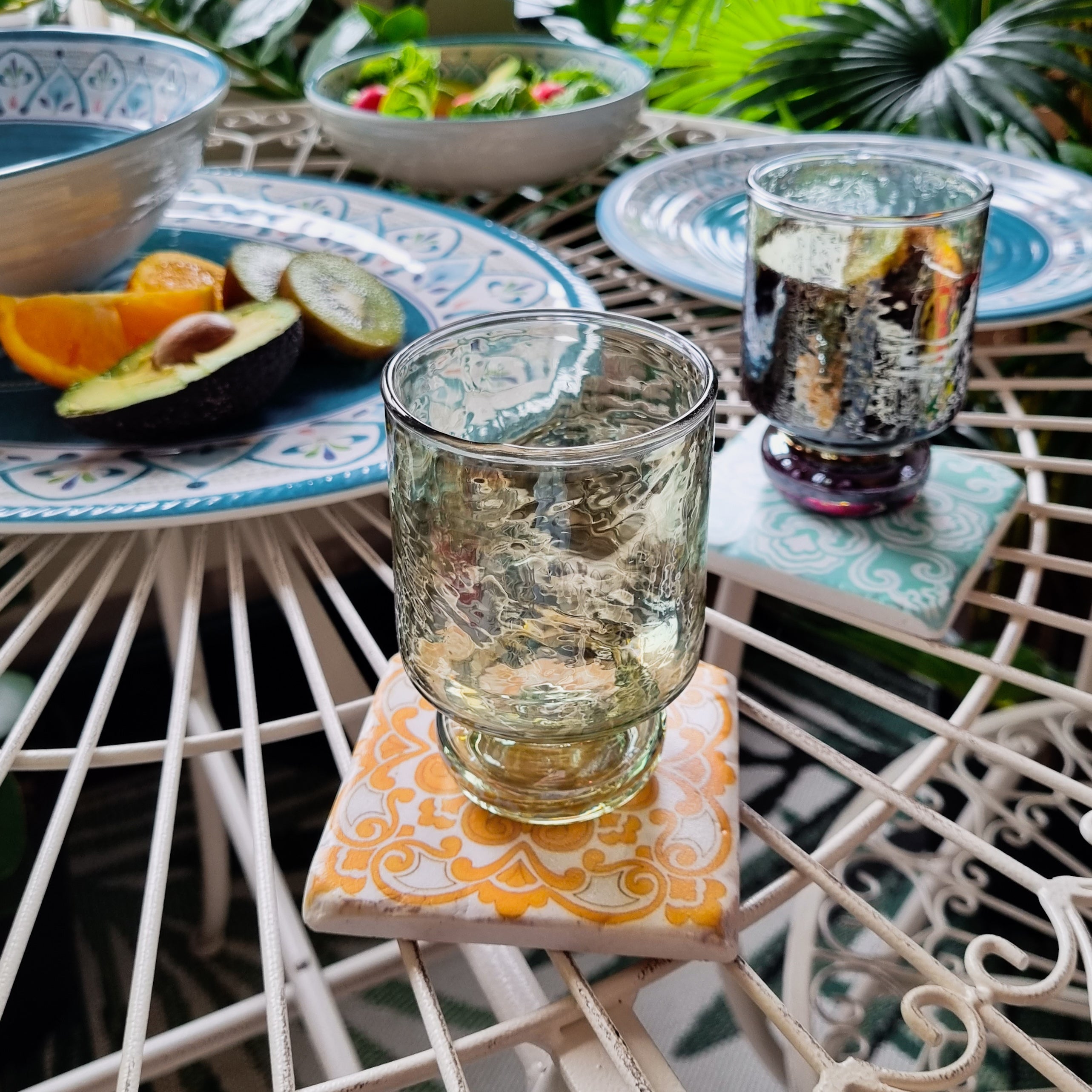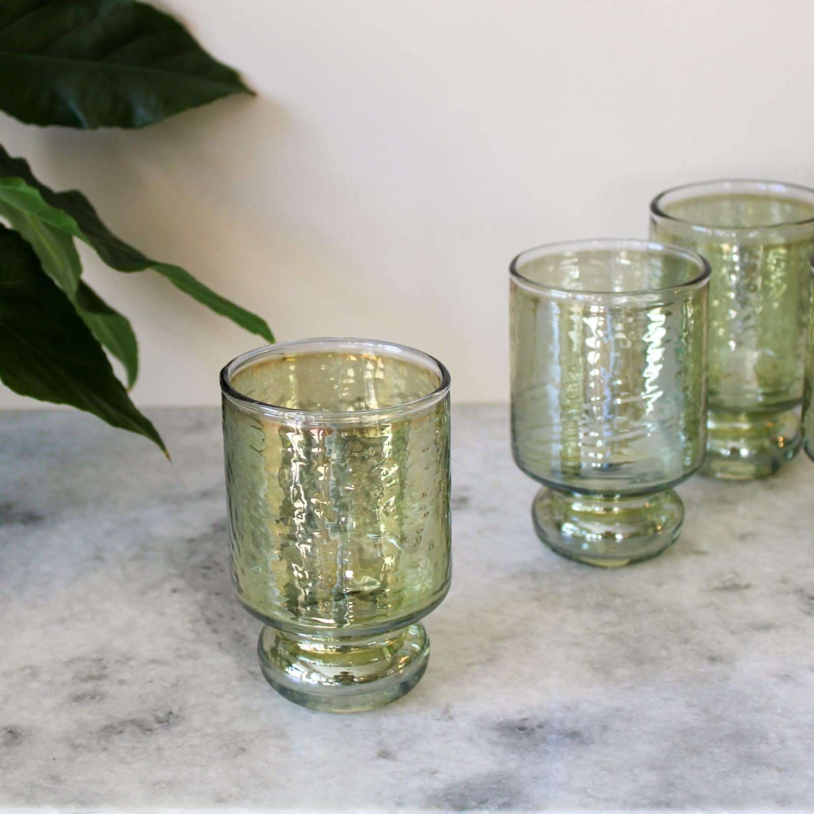 Ce sont les verres à vin parfaits en milieu de semaine ! Ils sont petits et soignés mais ont ce ton vert irisé très attrayant et inhabituel qui les fait briller à la lumière. Nous pensons que cela leur donne les caractéristiques parfaites pour injecter un peu de glamour dans un verre rapide avec un ami. Associez-les aux gobelets correspondants si vous voulez vous lancer dans un luxe décontracté !