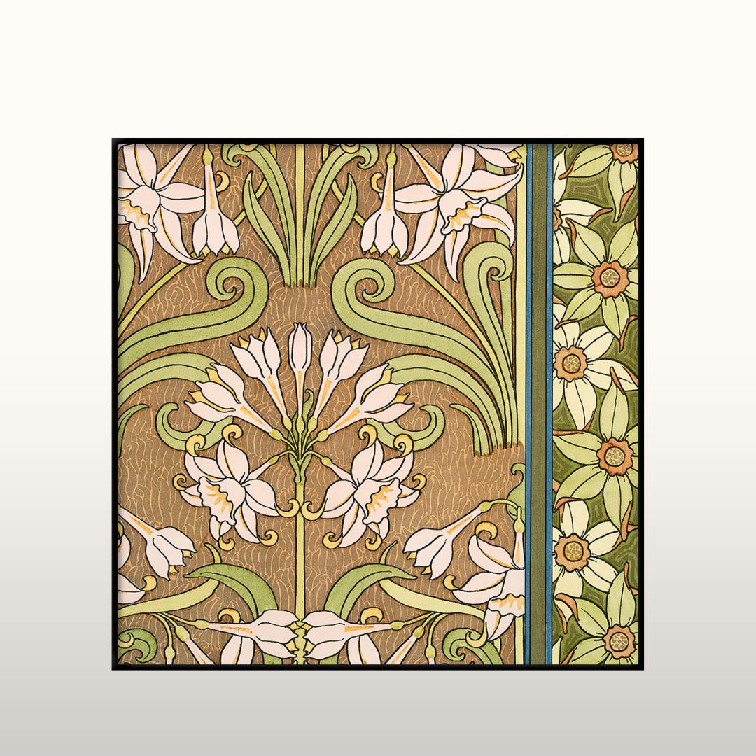 An art nouveau inspired pattern print that will provide a gorgeous Arts & Crafts touch to your home.  The earthy colours are perfect for pairing with a lovely neutral interior and adding that little decorative touch without too much contrast.  Ideal for a guest bathroom or bedroom.