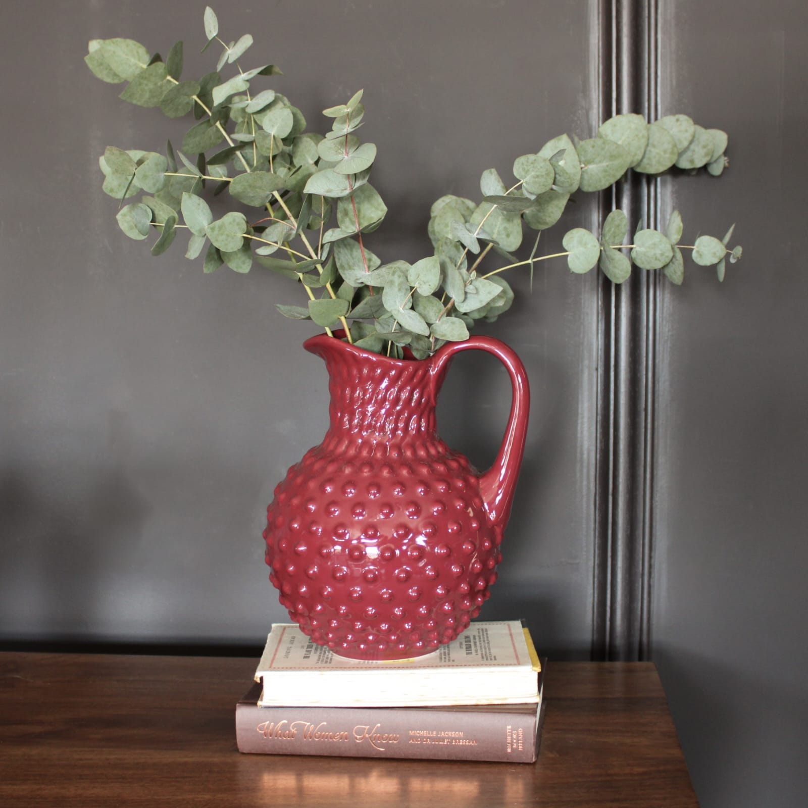 Serve your water (or your wine!) in this gloriously rich red earthenware jug. The diamond shape finish adds a lovely textural flourish to your table setting. Earthenware is great for keeping drinks cool so this jug will work just as well indoors or outdoors. Store it in a fabulous bar cabinet when not in use or have out on a shelf for all to admire!