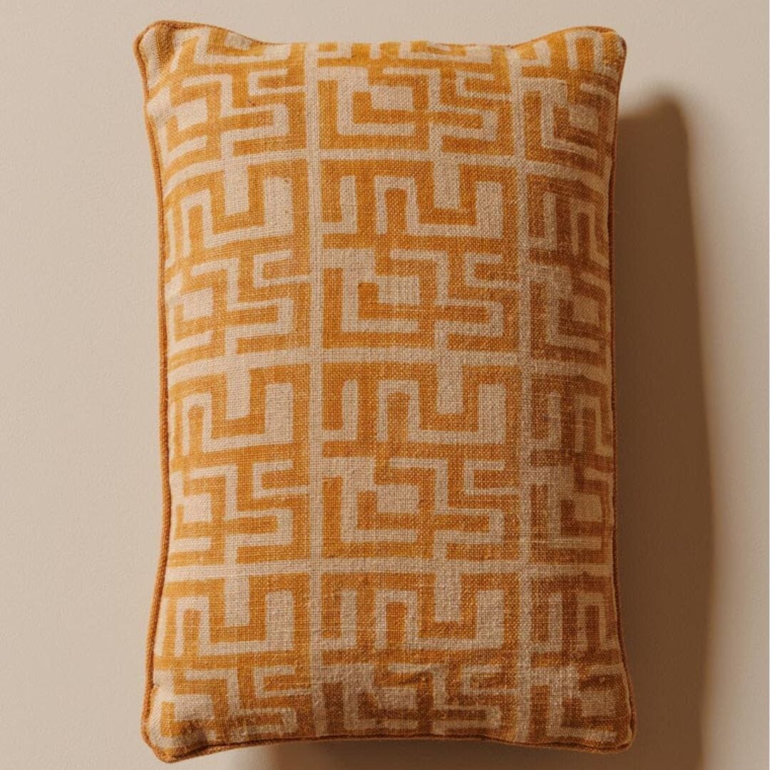 Elevate your bedroom decor with this sophisticated 40x60 orange geometric cushion crafted from textured jute fabric. Its natural material brings earthy warmth, while the vibrant pattern adds a refined pop of colour. Perfectly paired with a 50x50 cushion, it enhances any space with subtle elegance and tactile charm.